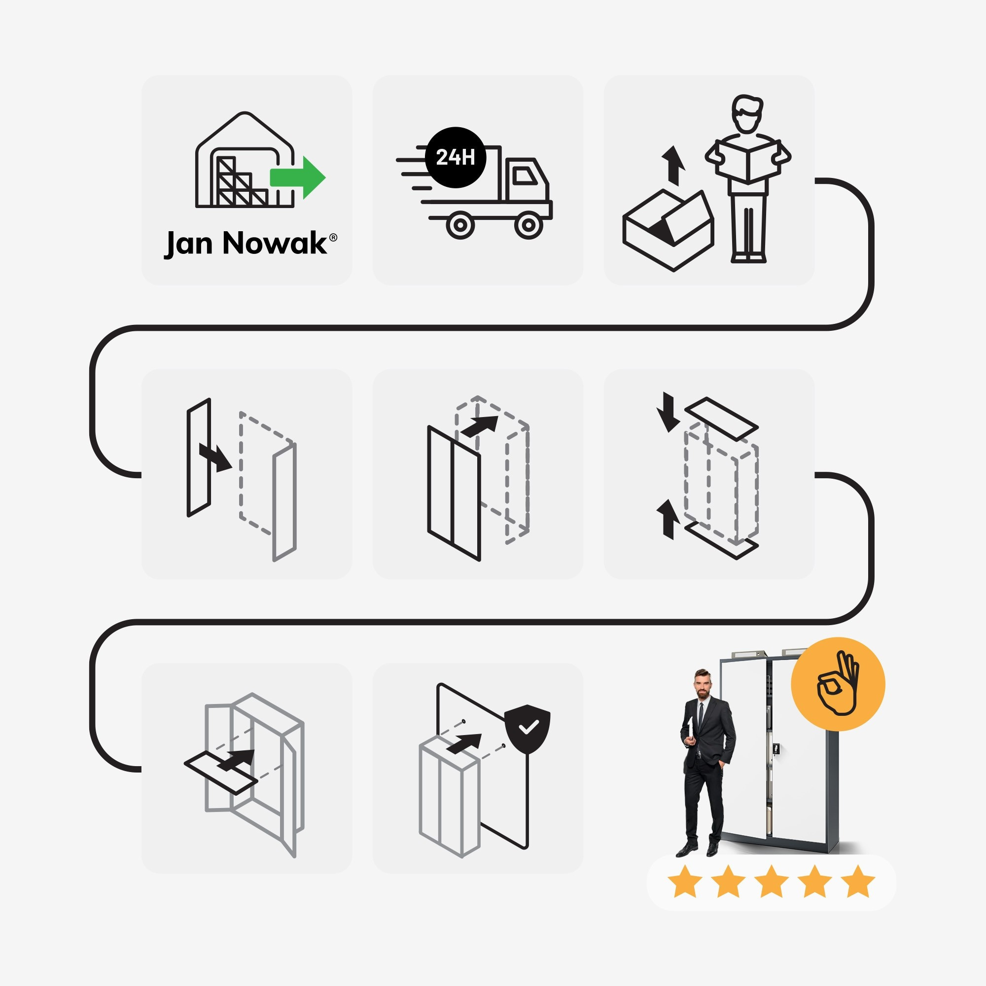 Skříň JAN II není jen obyčejný kus nábytku. Je to promyšlený systém pro organizaci a bezpečné uložení vašich cenností. Její robustní konstrukce, variabilita a moderní design z ní dělají nepostradatelného pomocníka v každém prostoru.