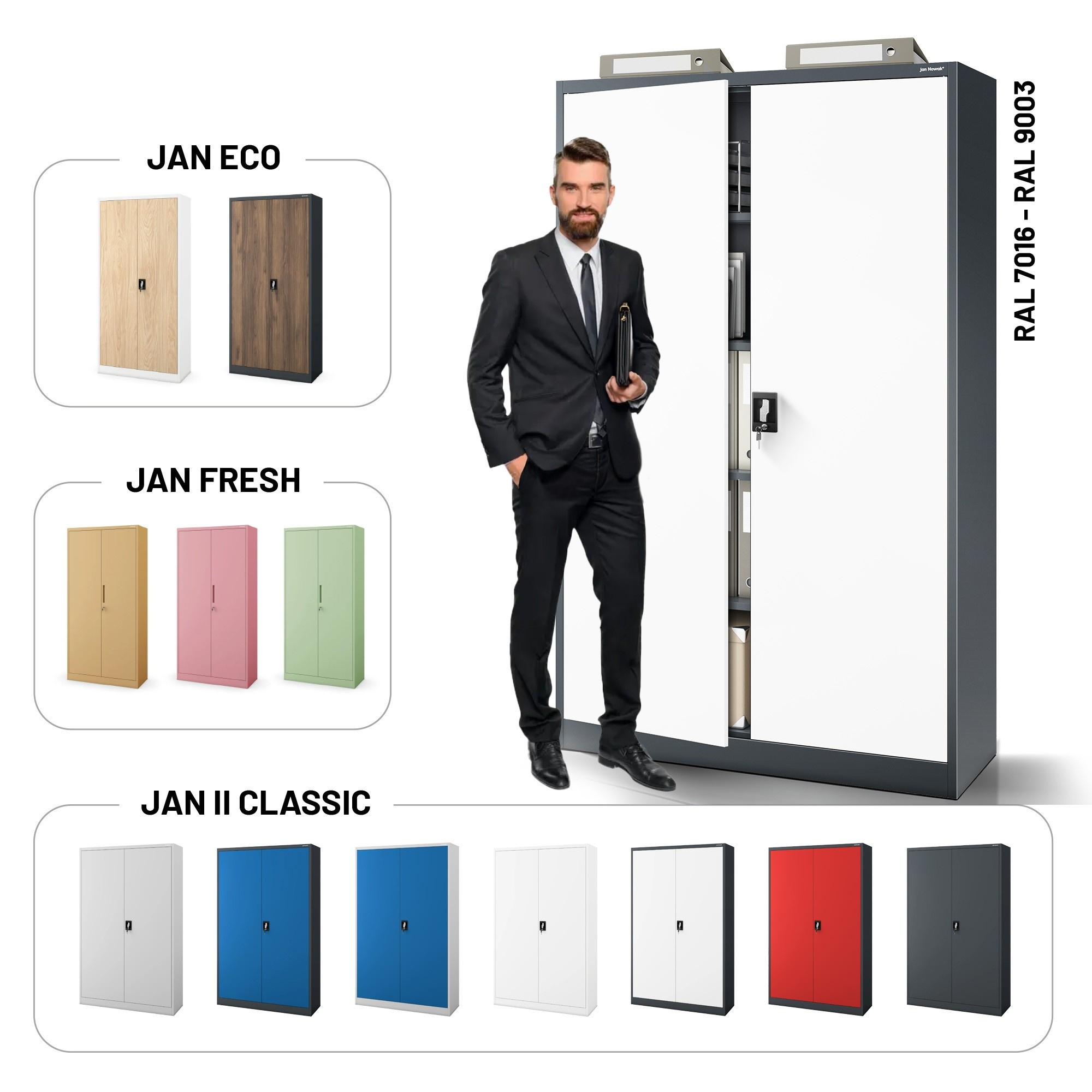 Skříň JAN II je součástí naší široké kolekce kancelářského nábytku. Vybavte si celou kancelář v jednotném stylu a užijte si komfort a funkčnost, kterou náš nábytek nabízí.