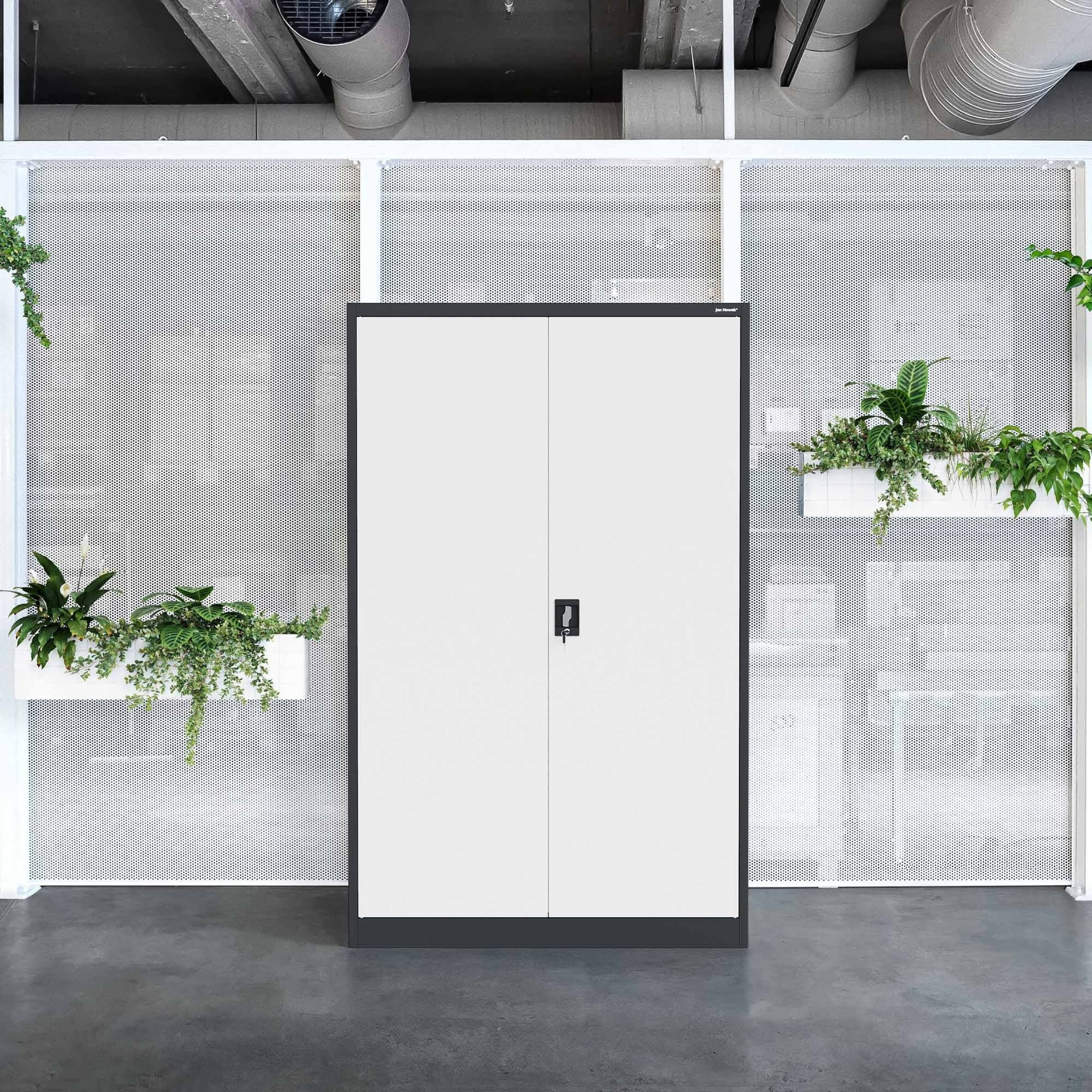 Kancelářská kovová skříň na dokumenty antracitovo-bílá JAN II, 1150 x 1850 x 400 mm