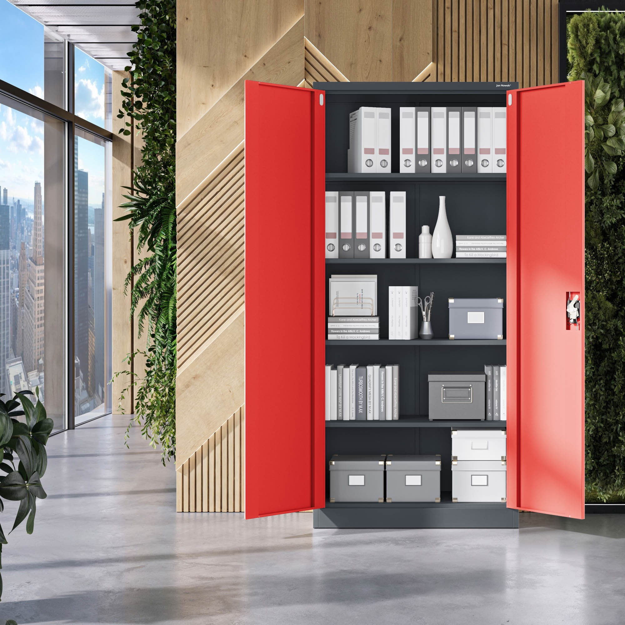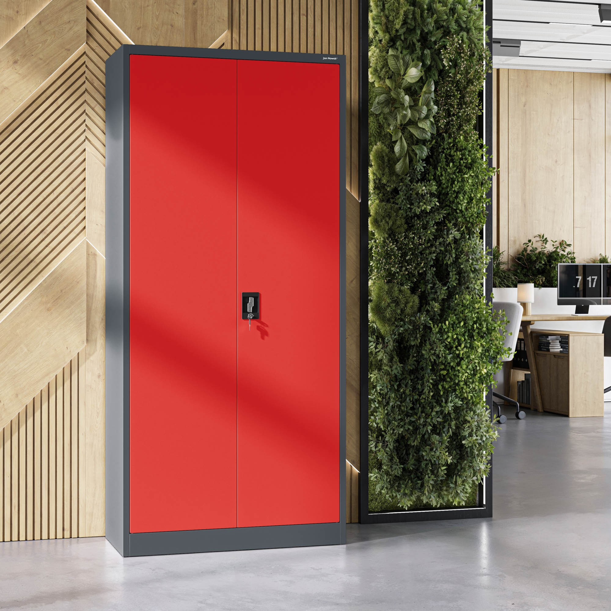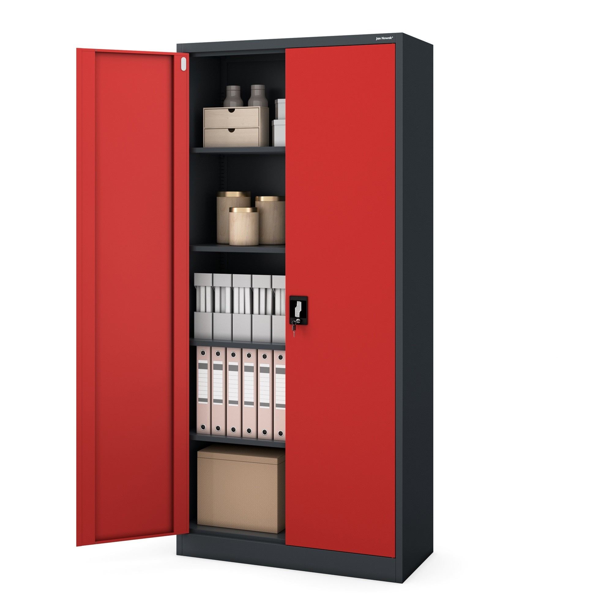 Hledáte spolehlivé a stylové řešení pro ukládání dokumentů, nástrojů nebo léků? Představujeme vám skříň JAN H v atraktivní antracitově-červené kombinaci, která se stane nejen praktickým, ale i designovým prvkem vašeho interiéru. Tato kovová skříň je ideální volbou pro kanceláře, dílny, zdravotnická zařízení i moderní loftové prostory.