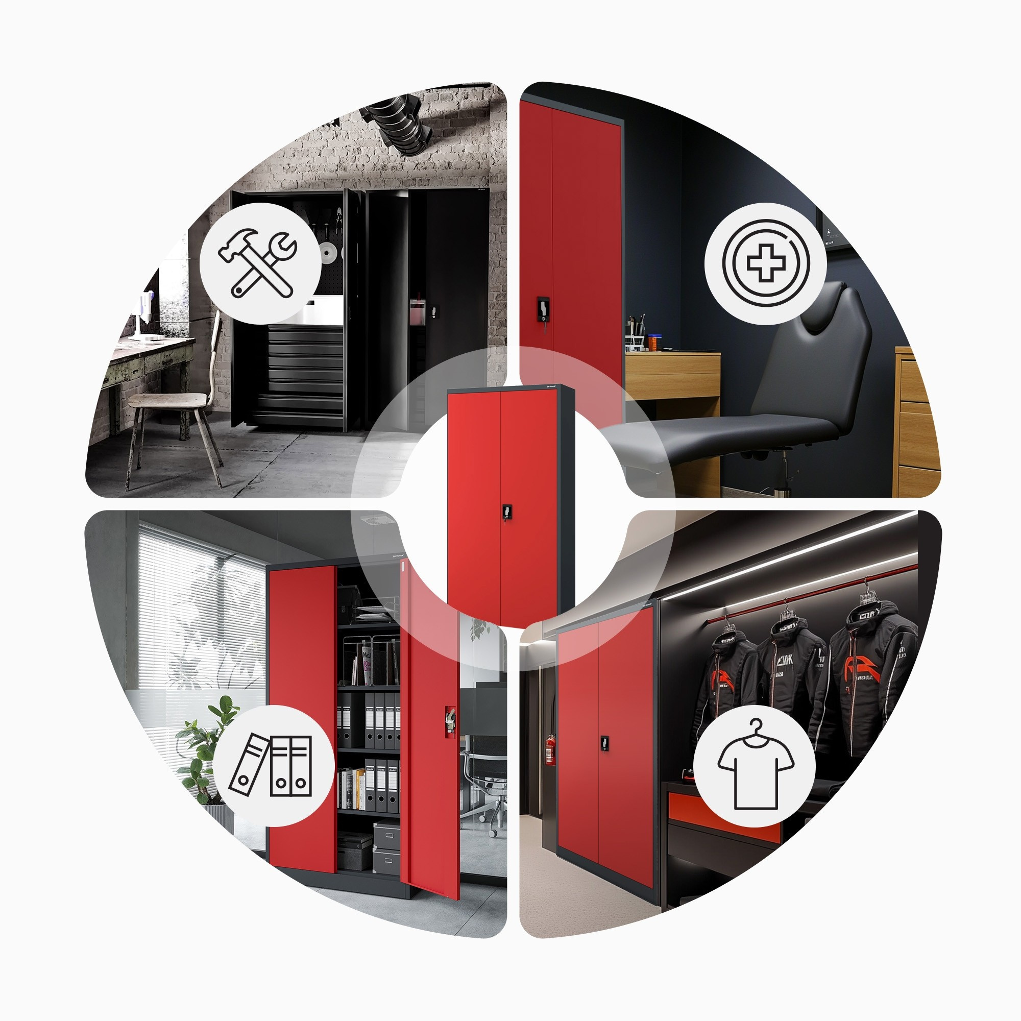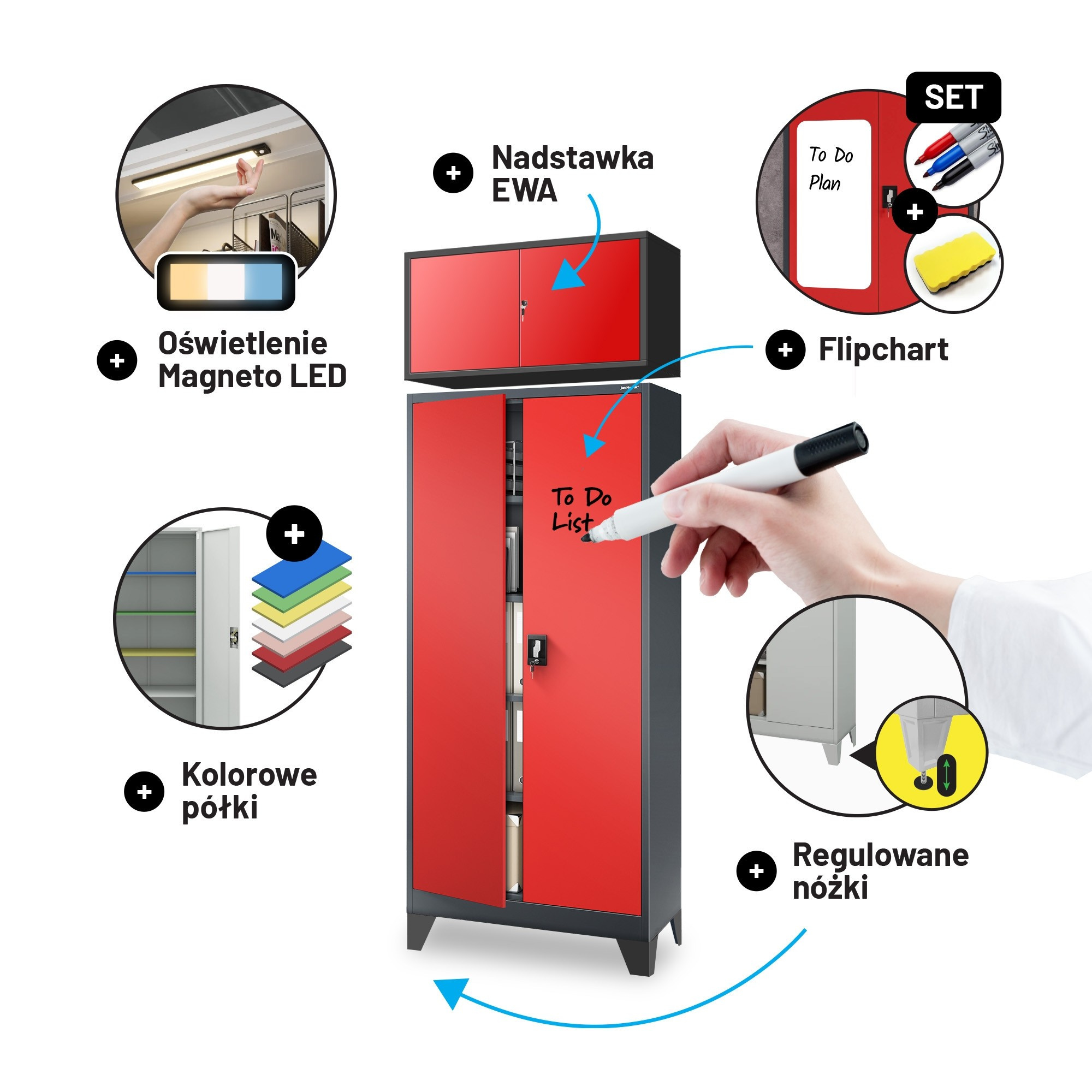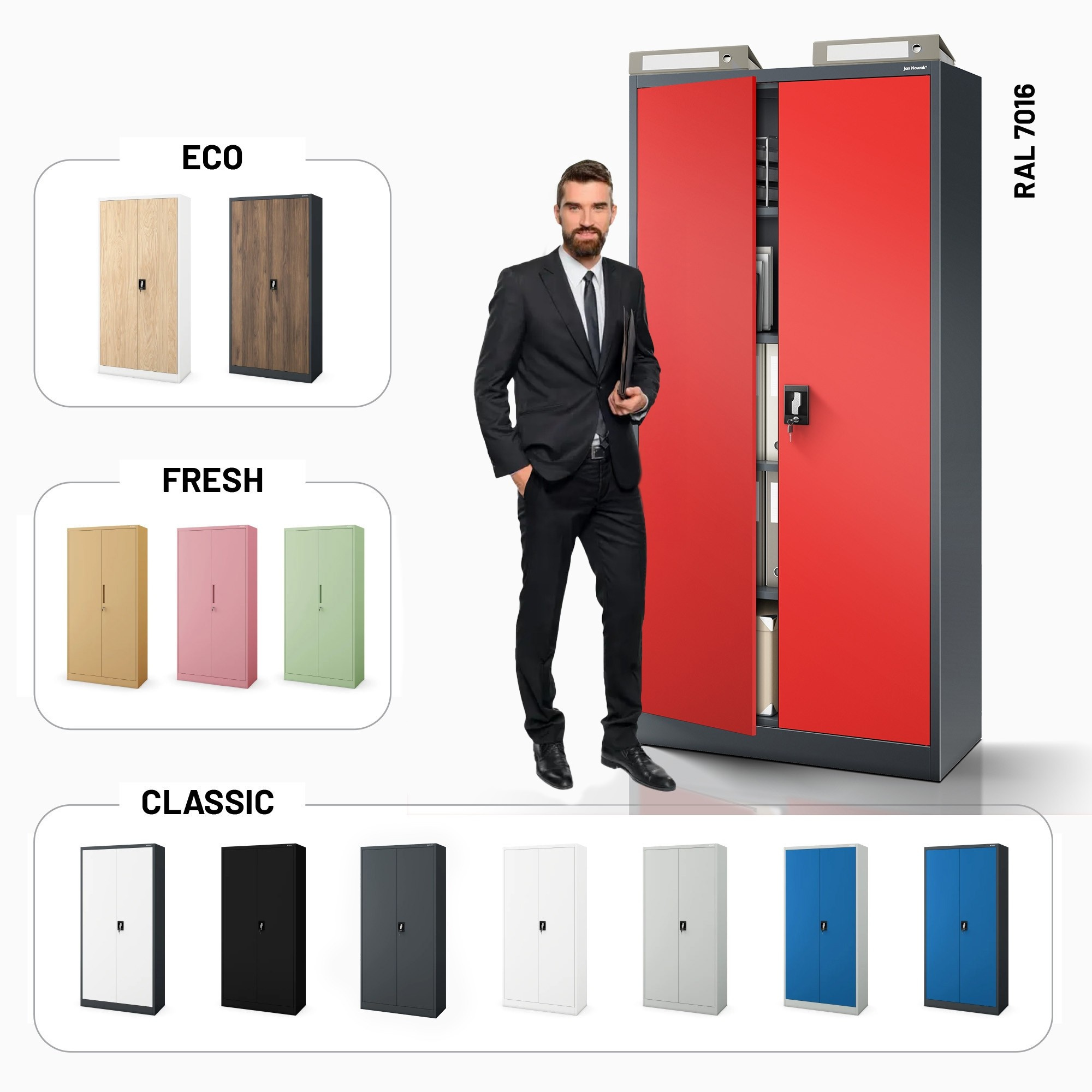 Hledáte spolehlivé a stylové řešení pro ukládání dokumentů, nástrojů nebo léků? Představujeme vám skříň JAN H v atraktivní antracitově-červené kombinaci, která se stane nejen praktickým, ale i designovým prvkem vašeho interiéru. Tato kovová skříň je ideální volbou pro kanceláře, dílny, zdravotnická zařízení i moderní loftové prostory.