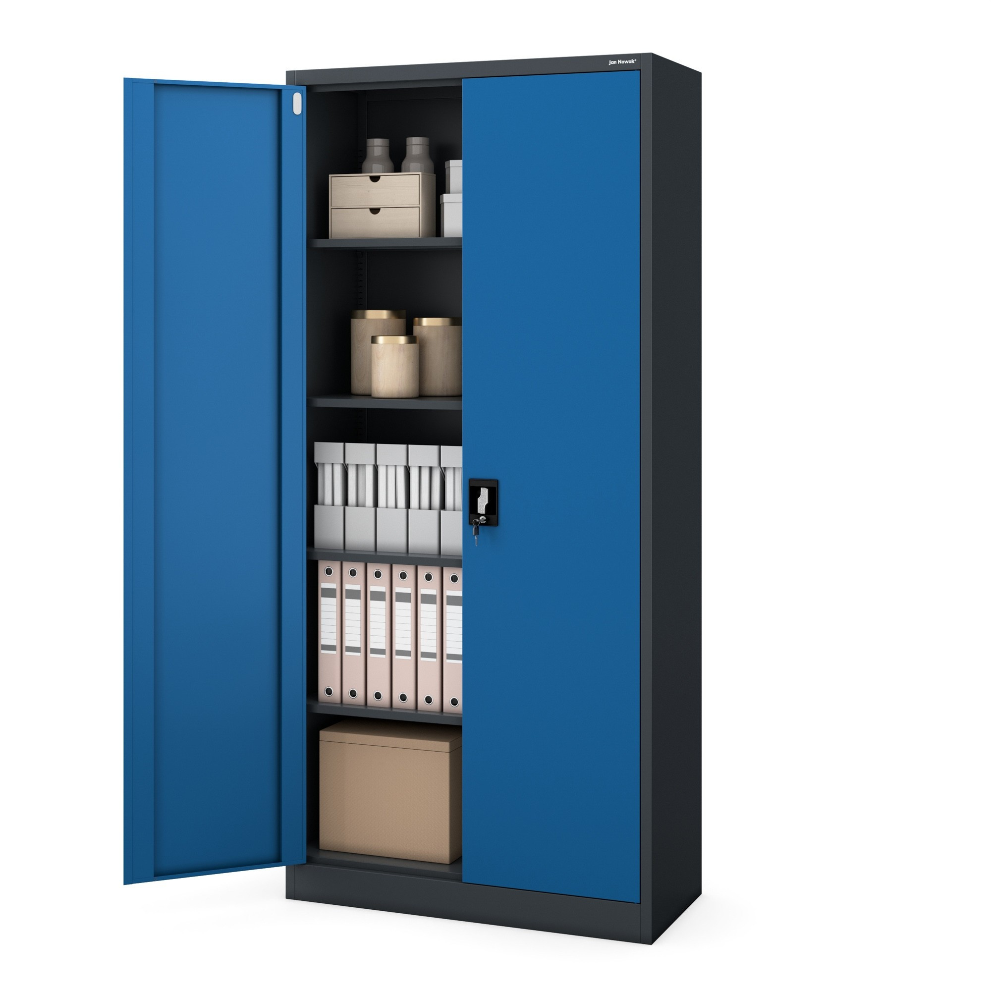 Kancelářská kovová skříň na dokumenty antracitovo-modrá: JAN H, 900 x 1950 x 400 mm