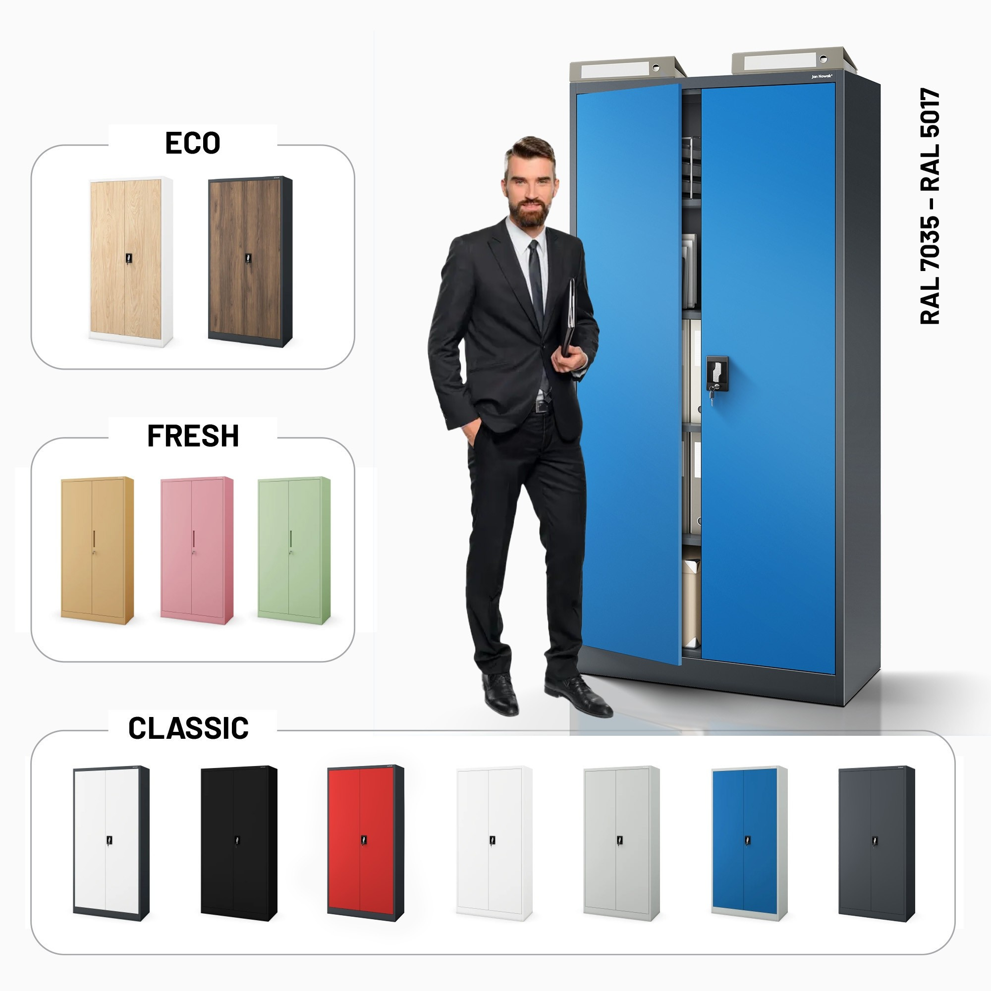 Hledáte spolehlivé a stylové úložné řešení? Představujeme vám skříň JAN H v atraktivní antracitově-modré kombinaci. Tato ocelová skříň je navržena tak, aby splňovala náročné požadavky moderního života, ať už ji potřebujete v kanceláři, dílně, lékařské ordinaci nebo dokonce i doma.