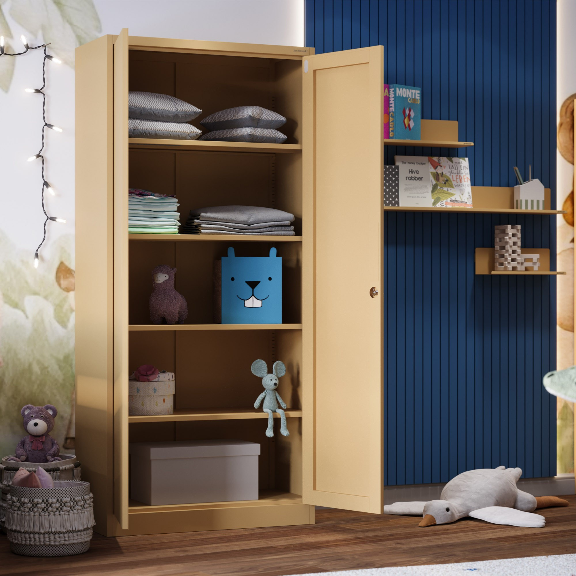S výškou 195 cm nabízí tato skříň maximální využití vertikálního prostoru. Uložte si do ní vše, co potřebujete, od šanonů a dokumentů až po nářadí a domácí potřeby.