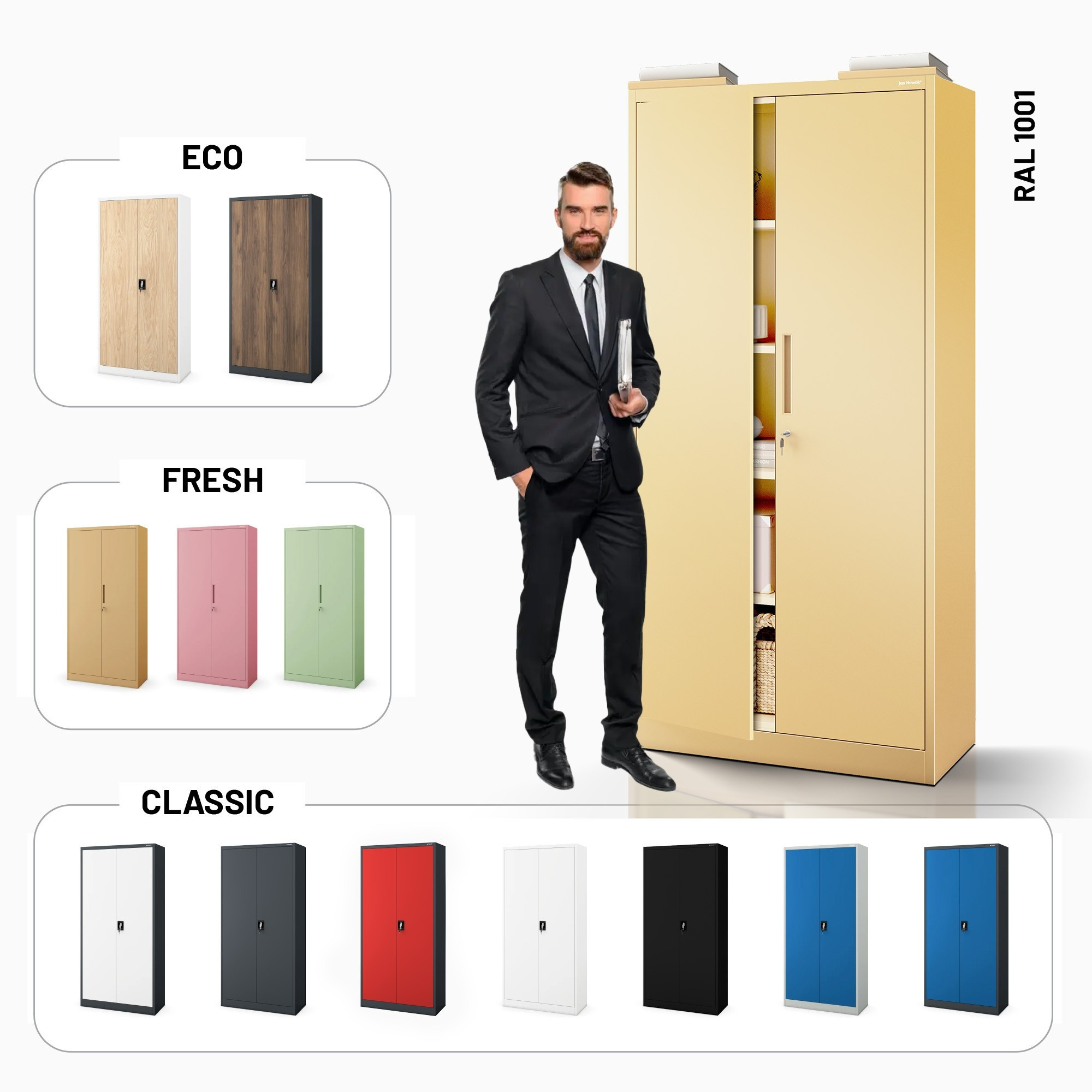 Kancelářská kovová skříň na dokumenty béžová: Fresh Style JAN H, 900 x 1950 x 400 mm