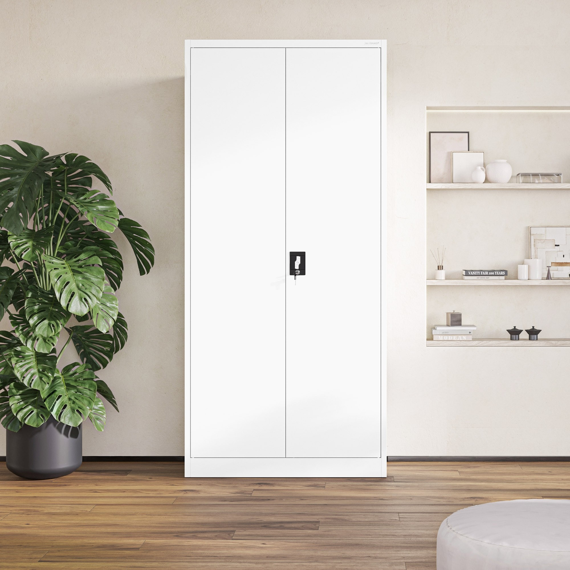 Bezpečnost vašich uložených věcí je pro nás prioritou. Proto je skříň JAN H vybavena dvoukřídlými dveřmi se zámkem uzamykatelným ve 3 bodech. K skříni obdržíte 2 klíče, takže budete mít vždy jistotu, že vaše dokumenty, léky nebo nářadí jsou v bezpečí.
