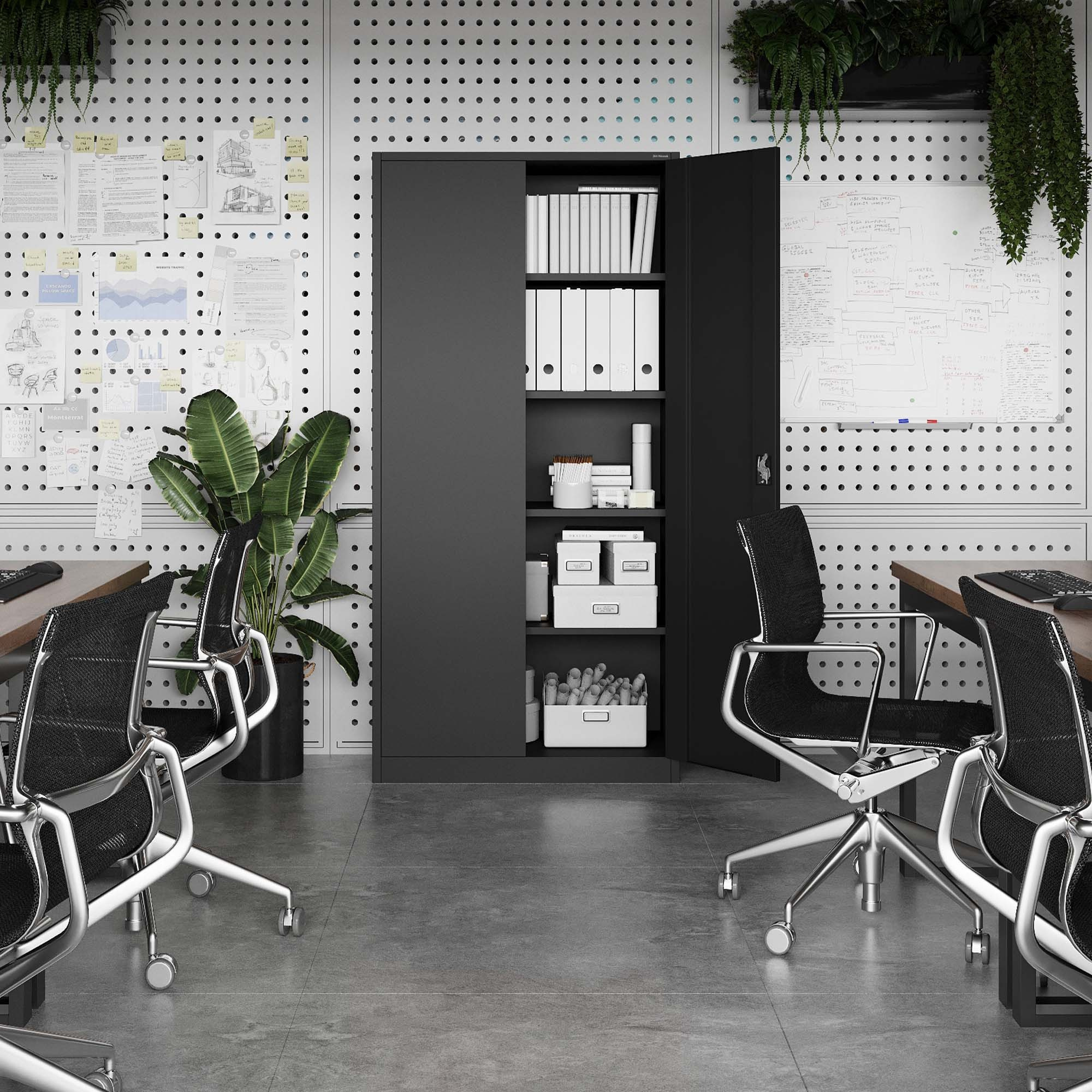 Díky svému industriálnímu vzhledu se skříň JAN stává stále oblíbenější volbou i pro soukromé osoby, které hledají moderní a funkční nábytek do svých interiérů. Její jednoduché linie a elegantní antracitová barva se snadno kombinují s různými styly a dodají vašemu prostoru šmrnc.