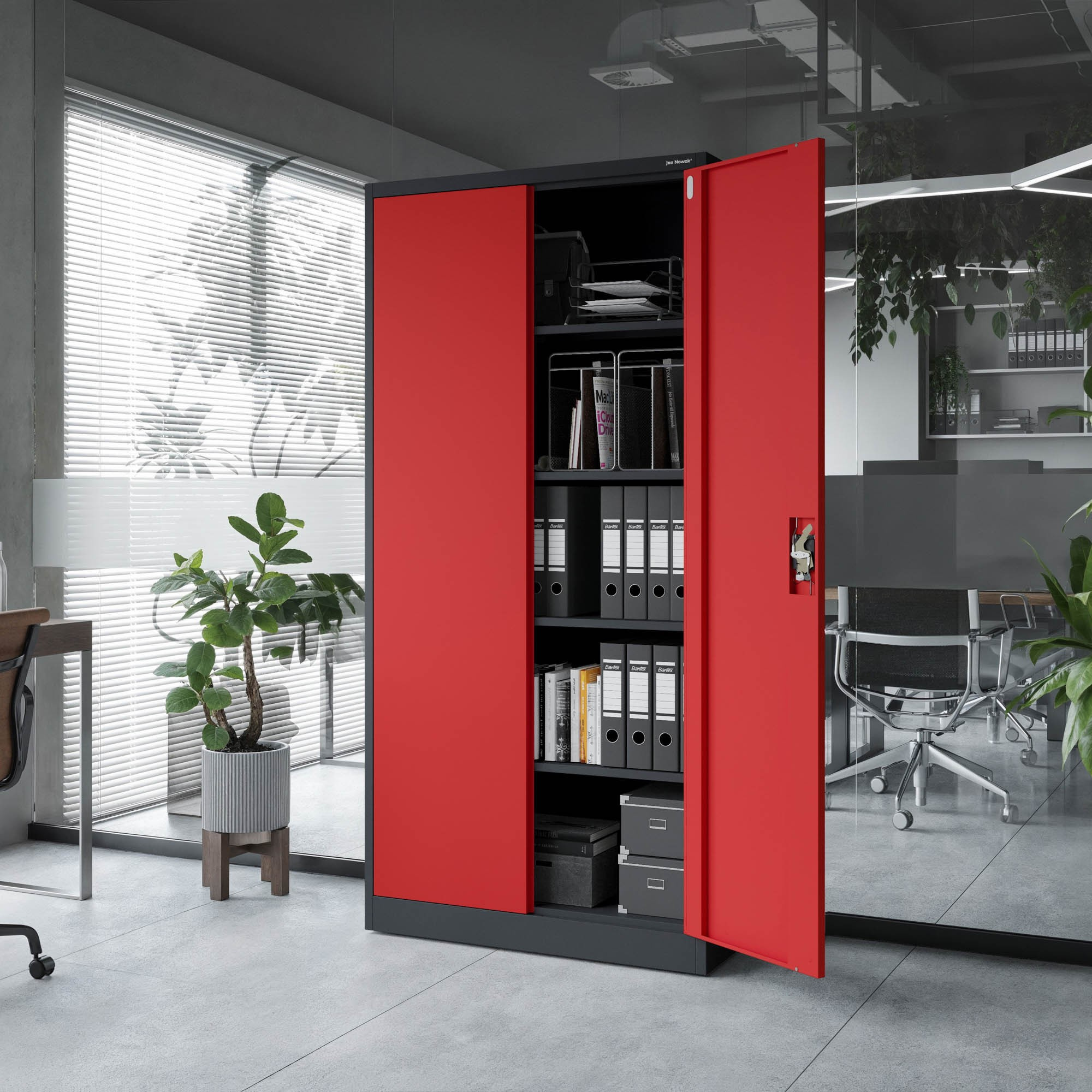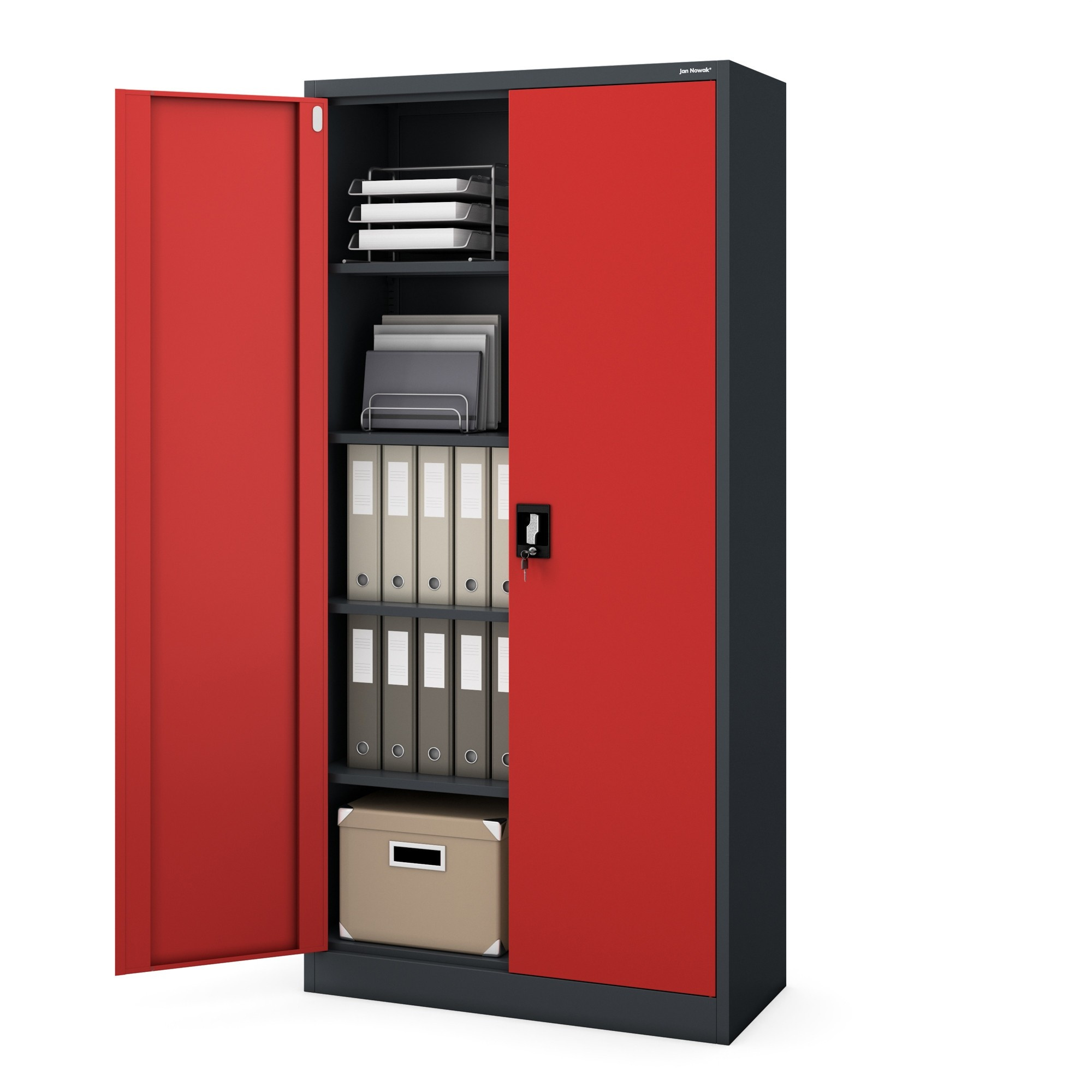 Kancelářská skříň JAN – Antracitově-červená: Spojení elegance a robustnosti pro vaši kancelář