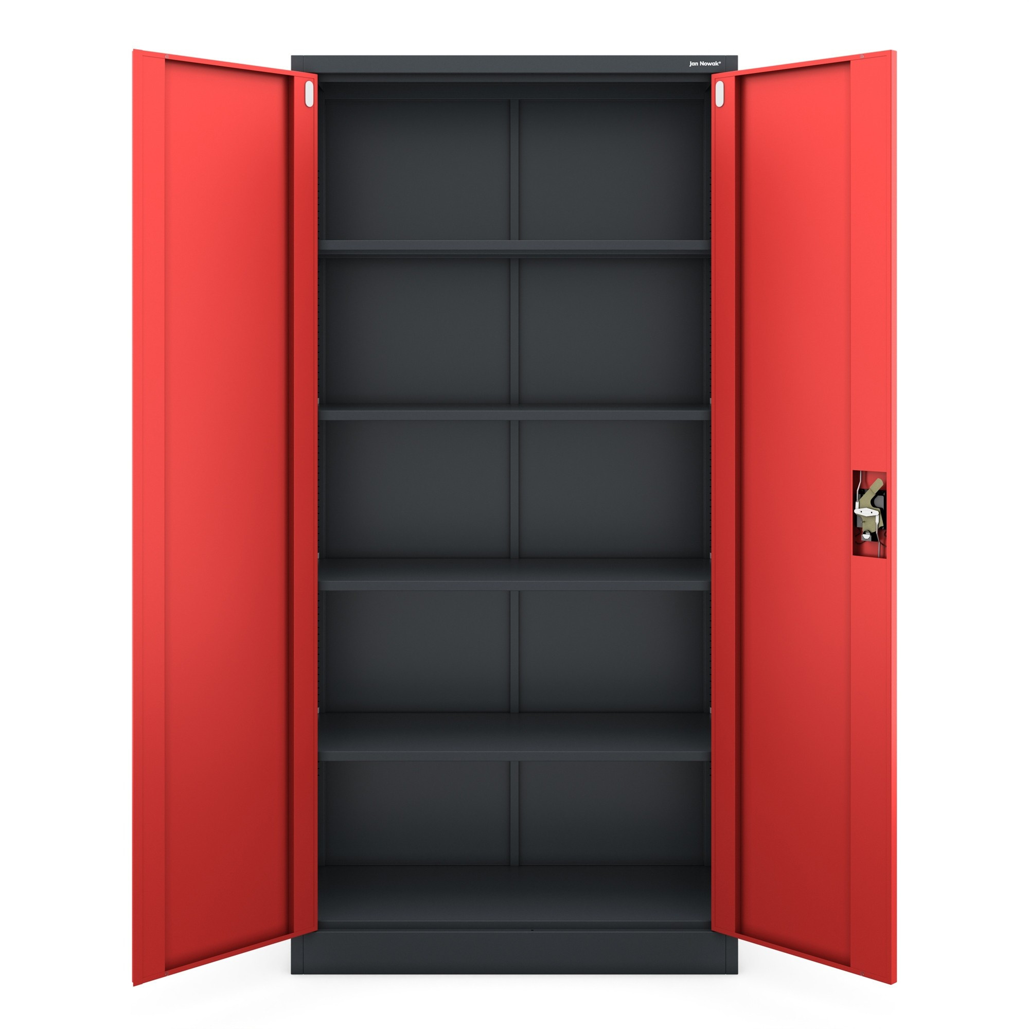 Kancelářská kovová skříň na dokumenty JAN, 900 x 1850 x 400 mm, antracitově-červená