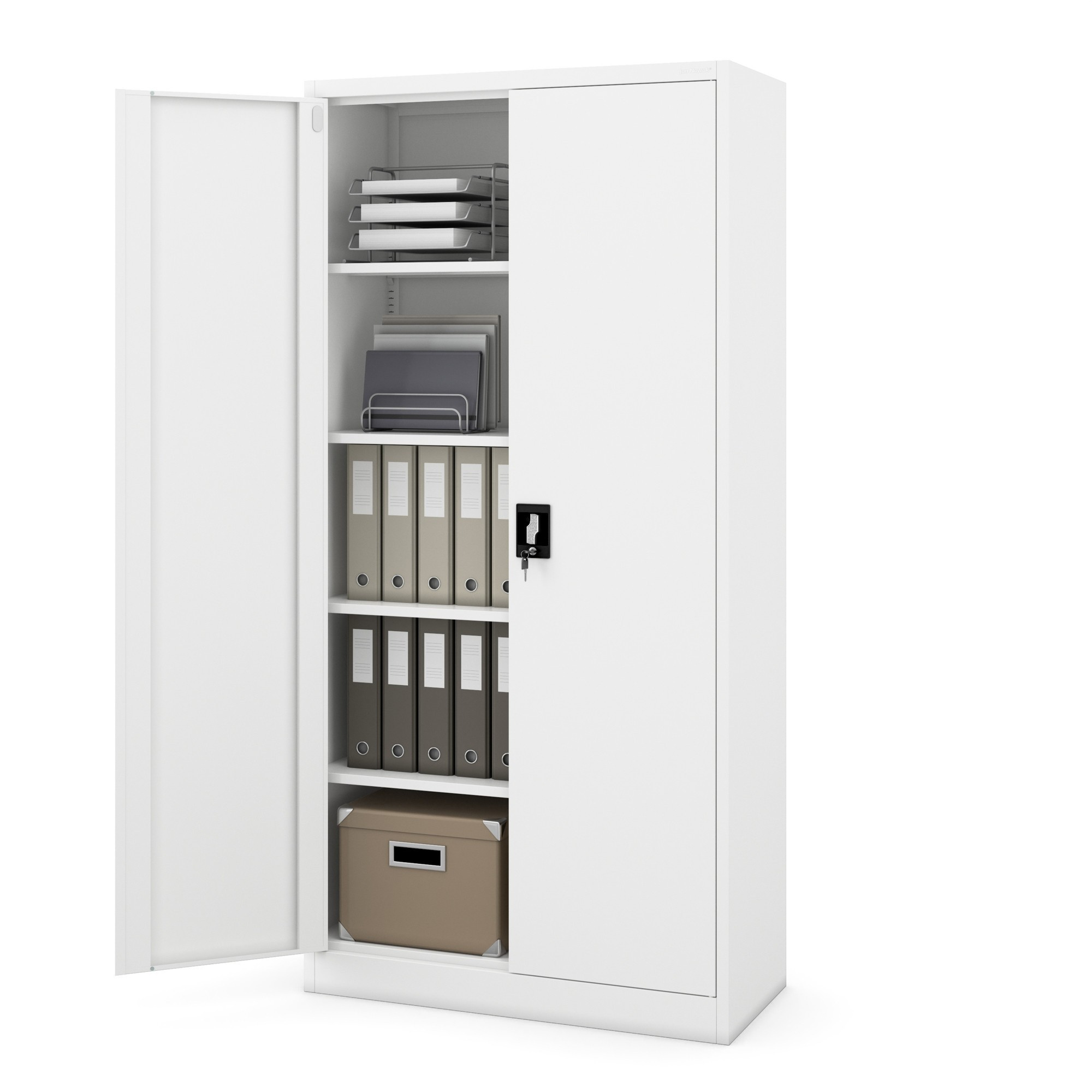 Kancelářská kovová skříň na dokumenty JAN, 900 x 1850 x 400 mm, bílá