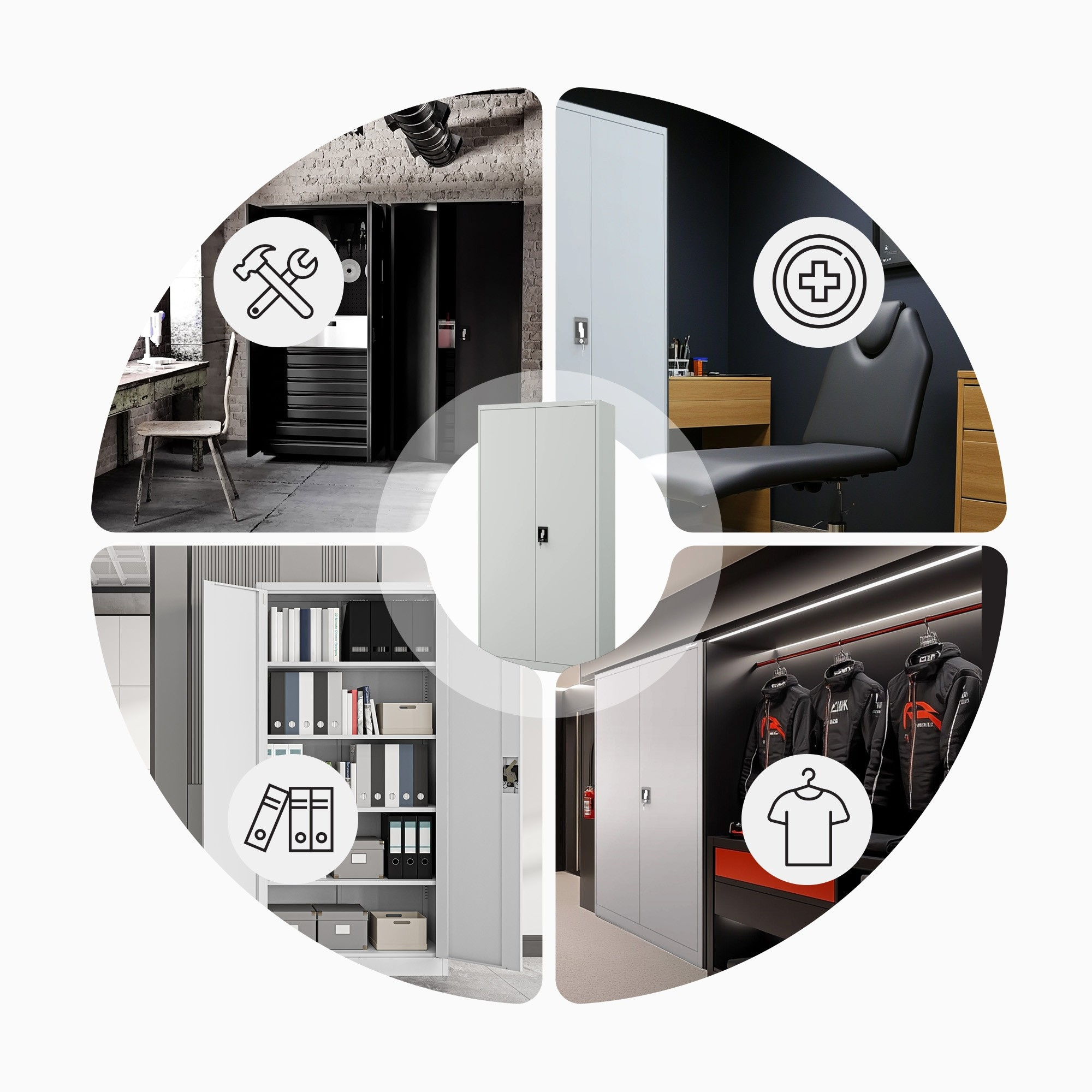 - Všestranné využití: Ideální jako kancelářská skříň na dokumenty, lékařská skříň na zdravotnické potřeby nebo skříň na nářadí v dílně.
