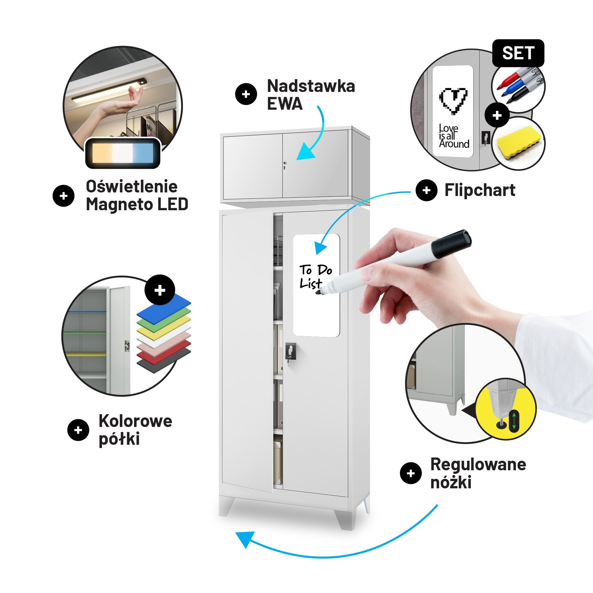 Skříň JAN H je produktem renomovaného evropského výrobce kovového nábytku. Můžete se spolehnout na vysokou kvalitu zpracování a použití nejlepších materiálů. Tato skříň vám bude sloužit dlouhá léta a stane se nepostradatelnou součástí vaší kanceláře nebo dílny.
