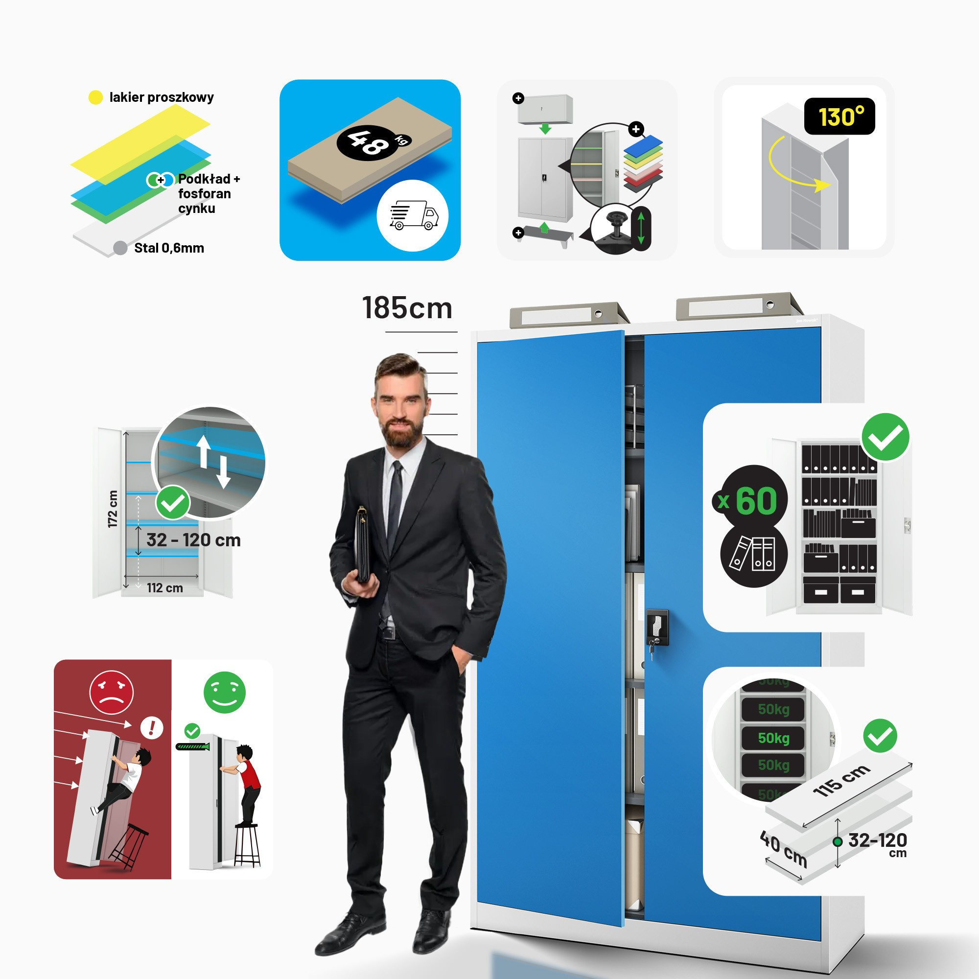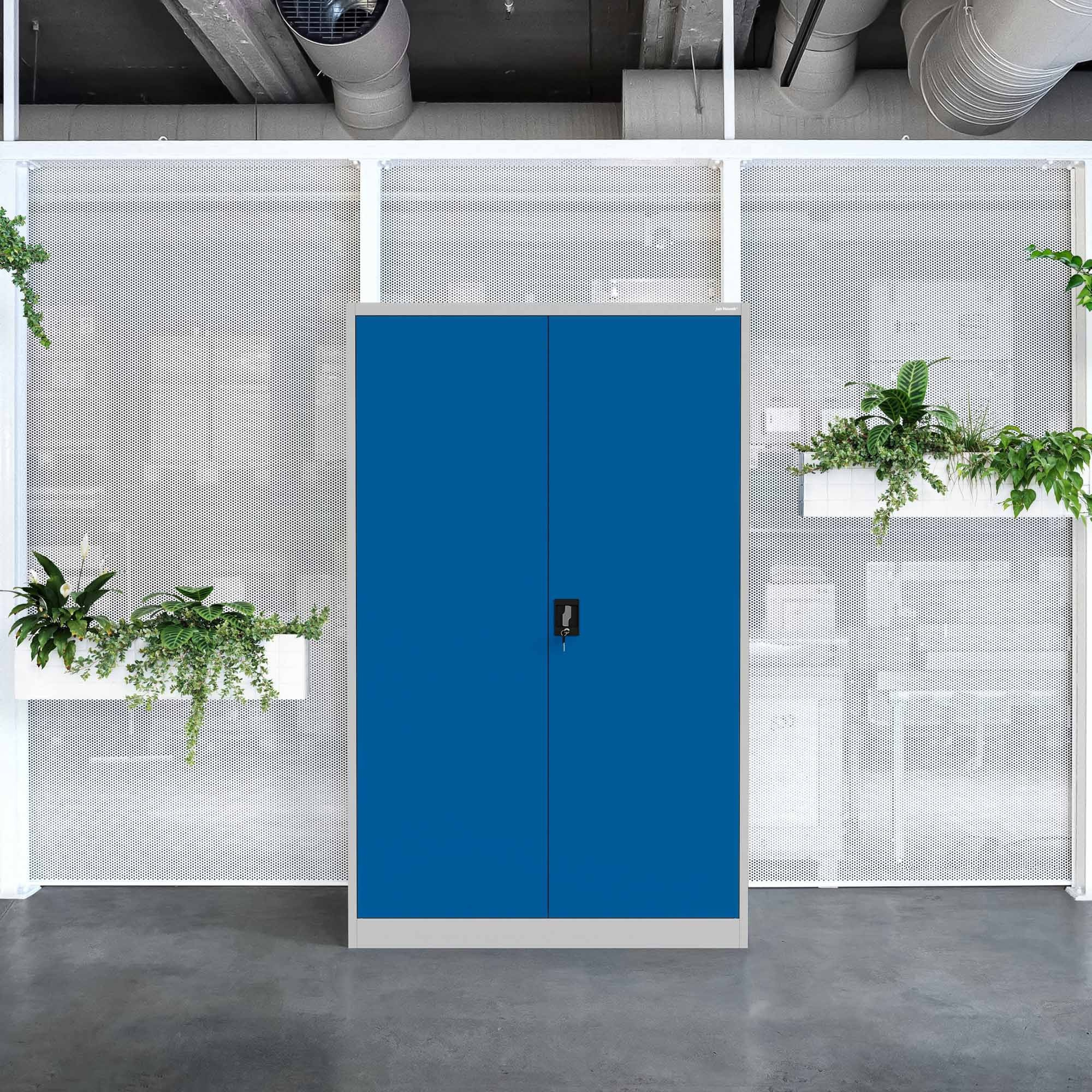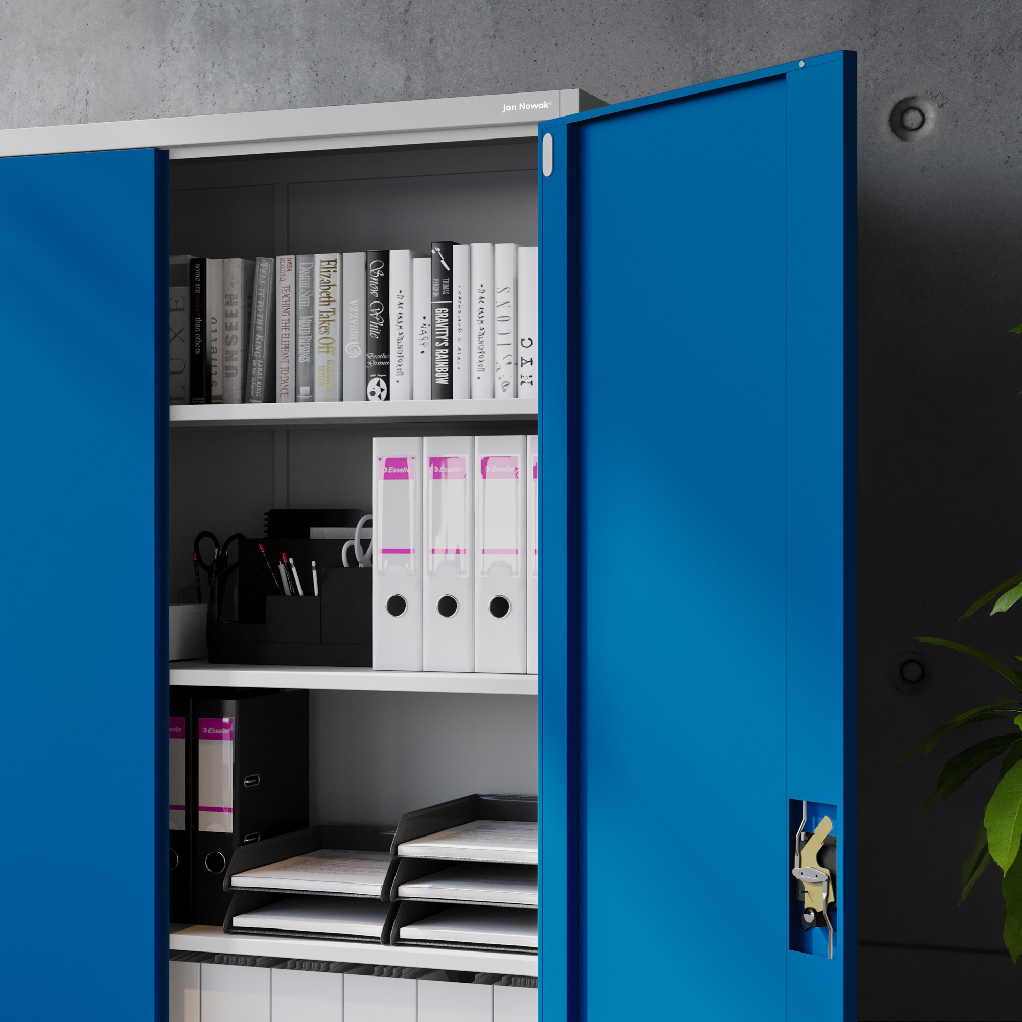 Kancelářská kovová skříň na dokumenty šedo-modrá JAN II, 1150 x 1850 x 400 mm