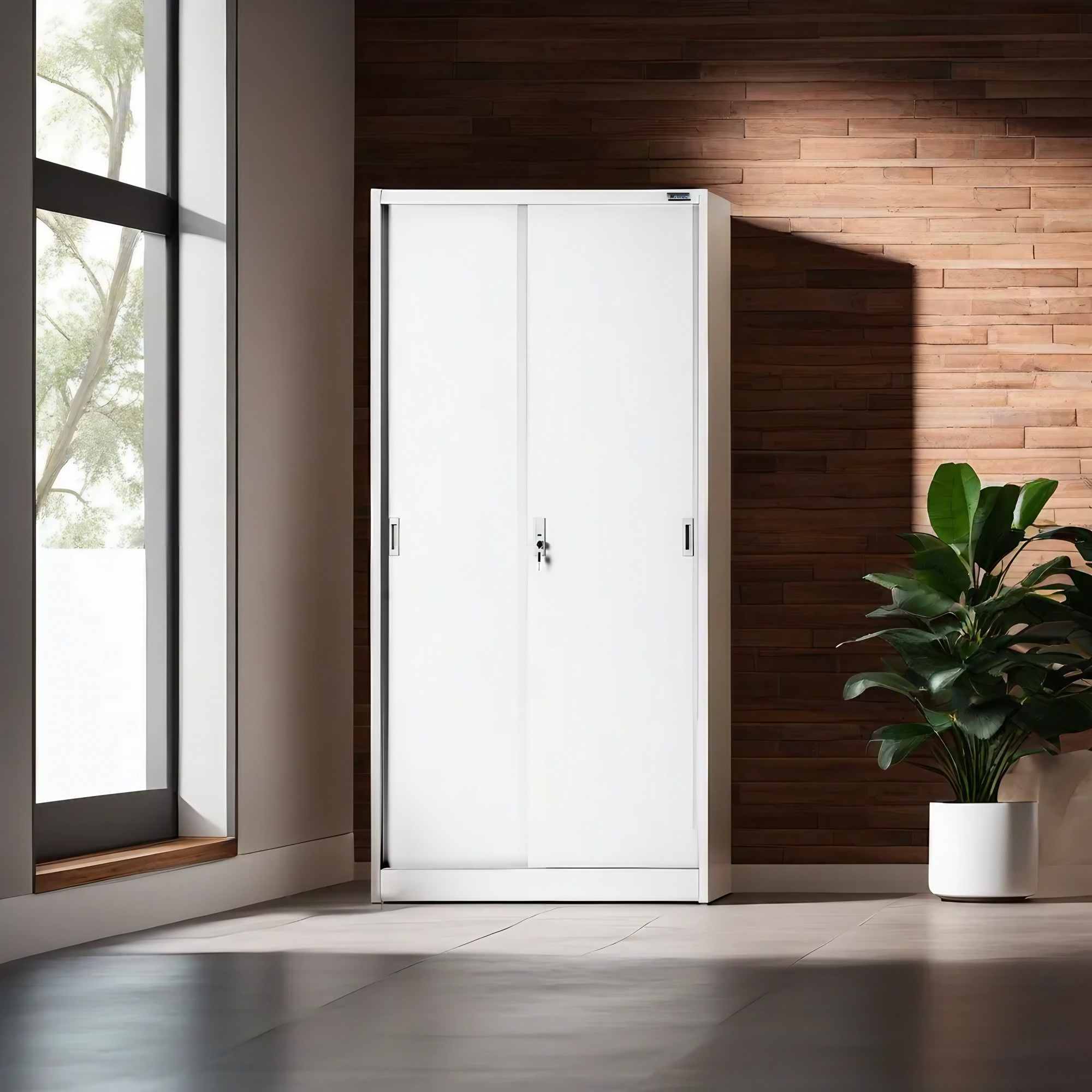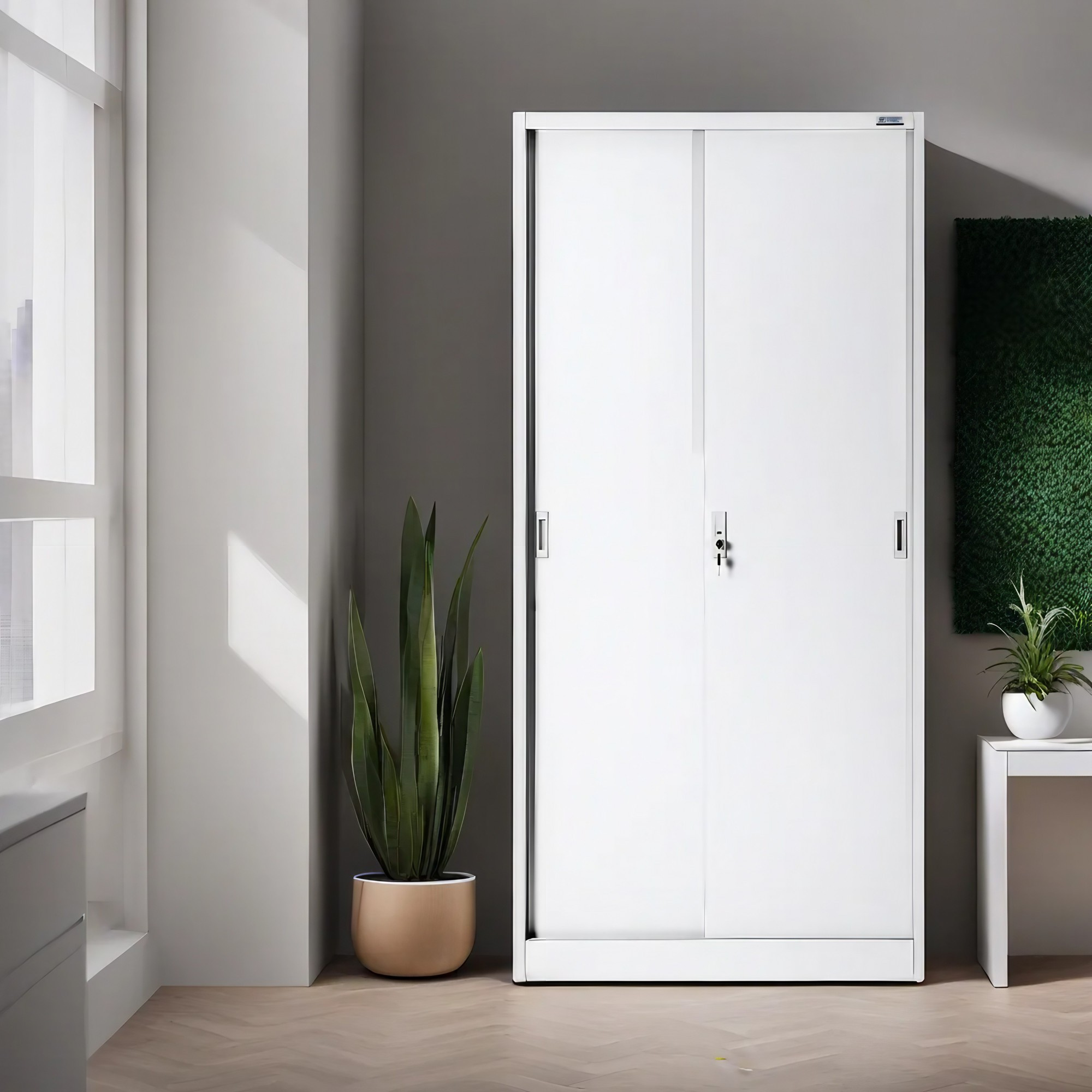 Dvoukřídlé posuvné dveře jsou vybaveny 3bodovým zamykacím zámkem, který zajistí bezpečné uložení vašich dokumentů a cenností. V balení naleznete 2 klíče.