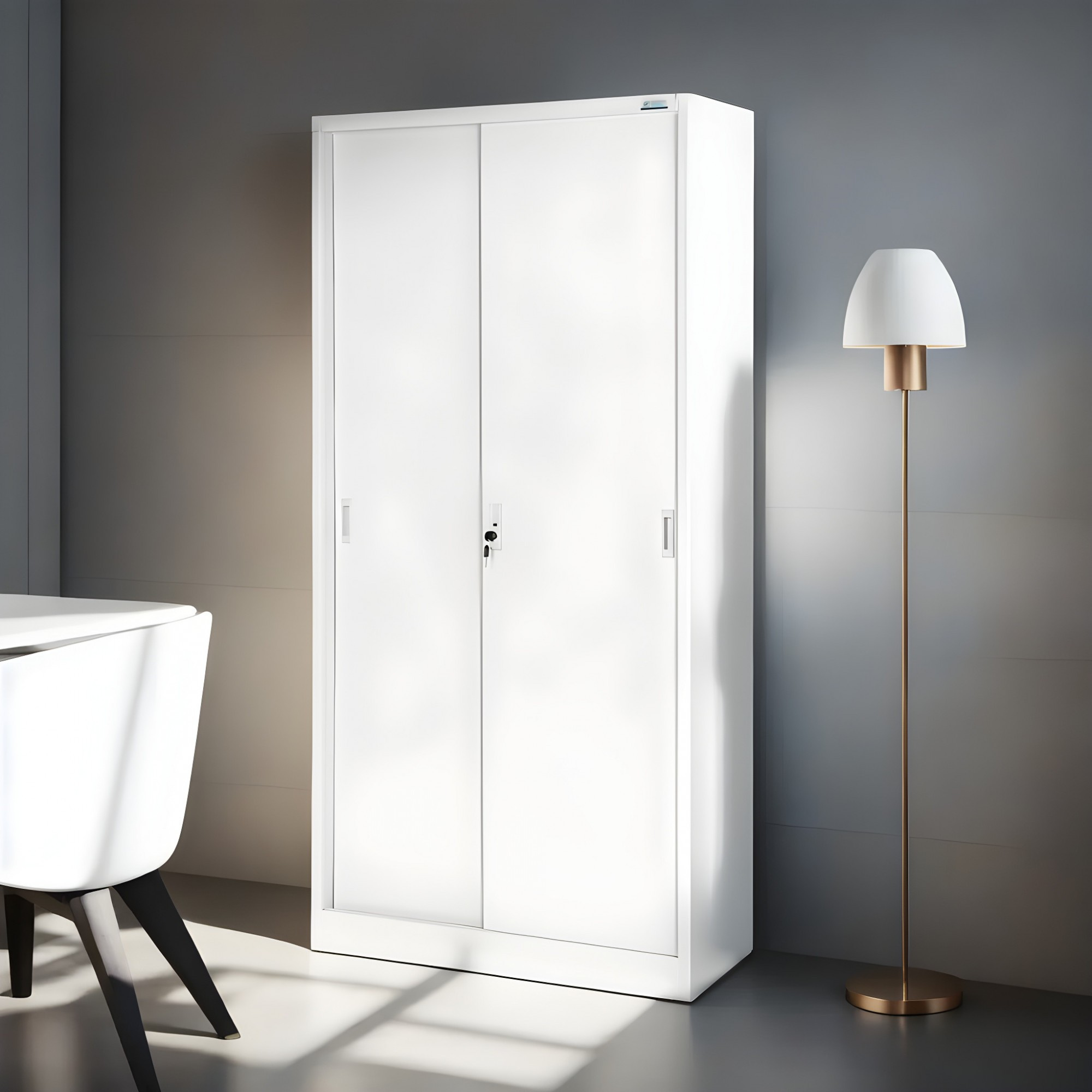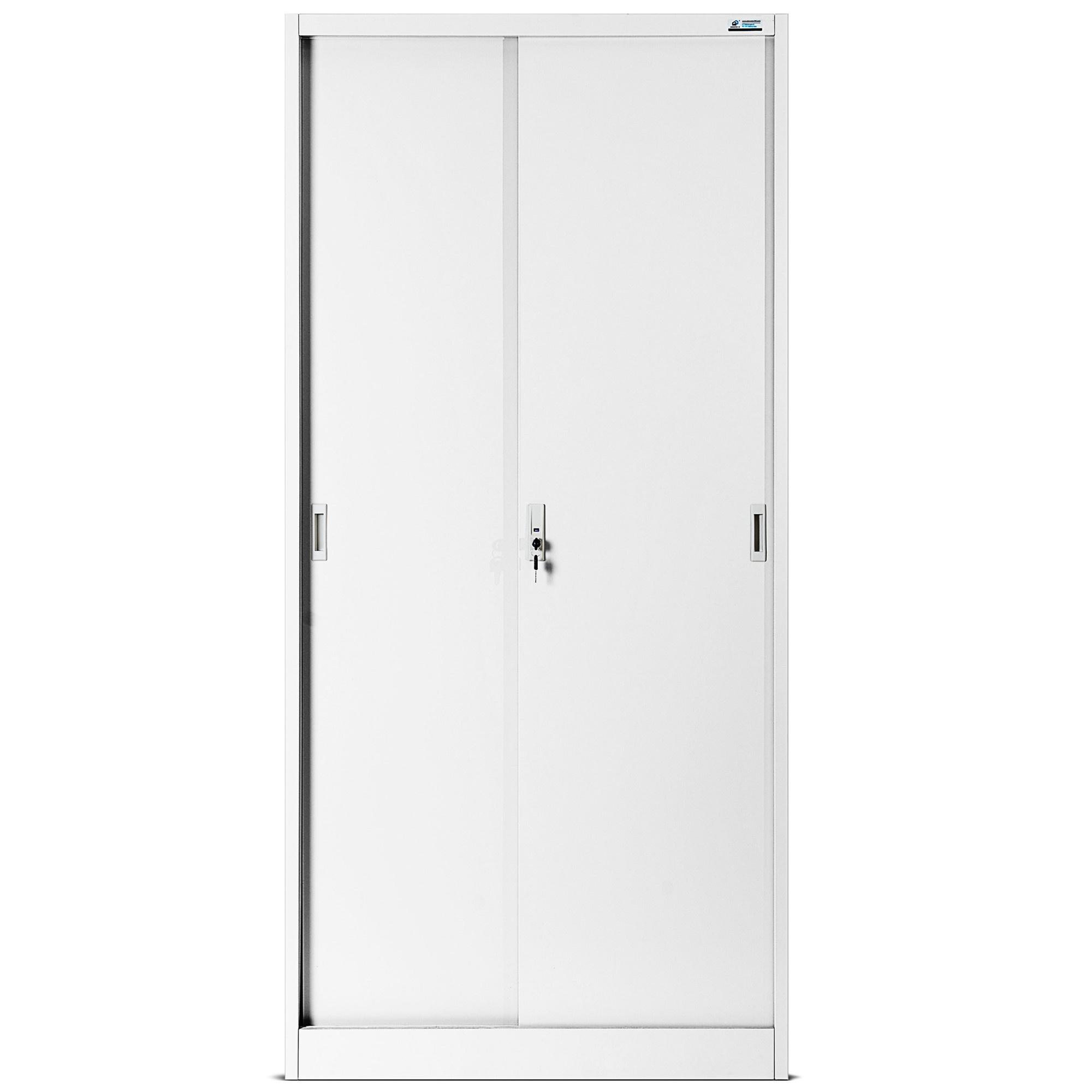 Kancelářská kovová skříň s posuvnými dveřmi KUBA, 900 x 1850 x 400 mm, bílá