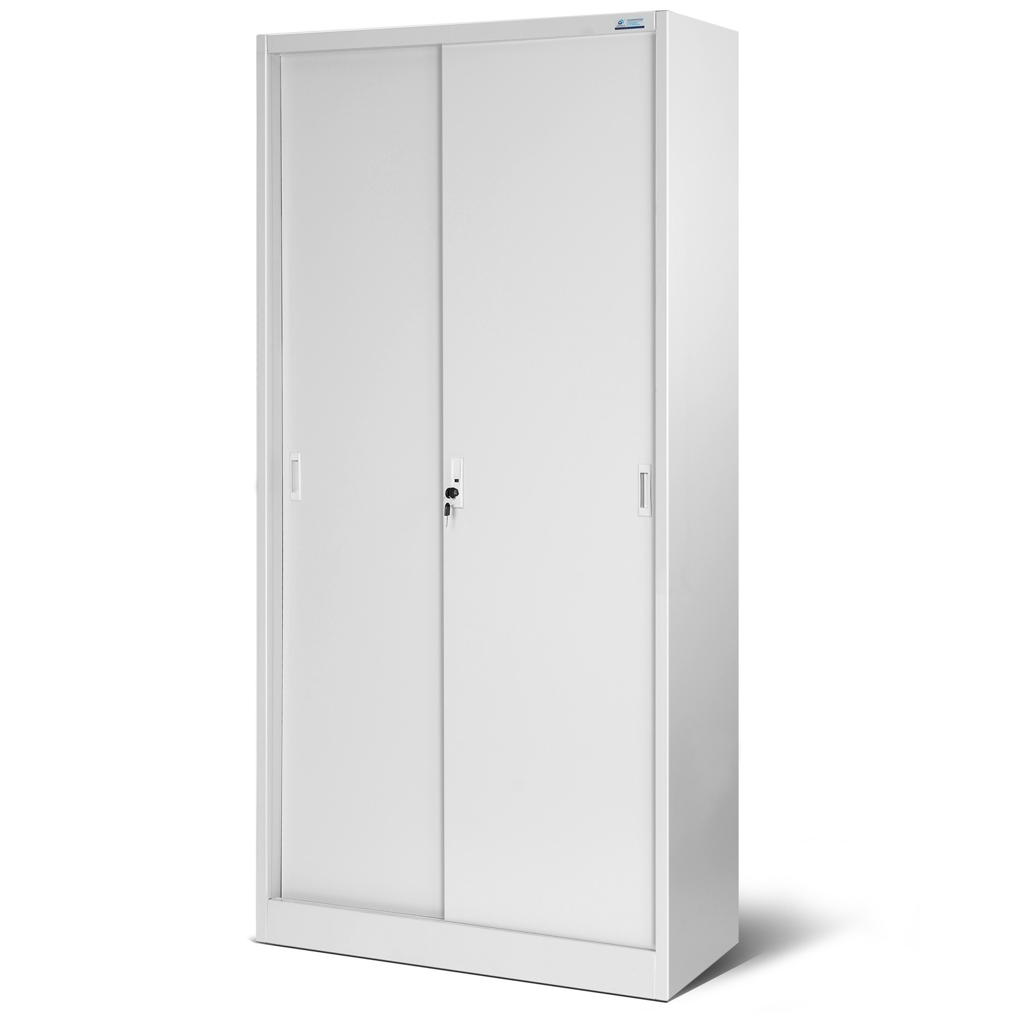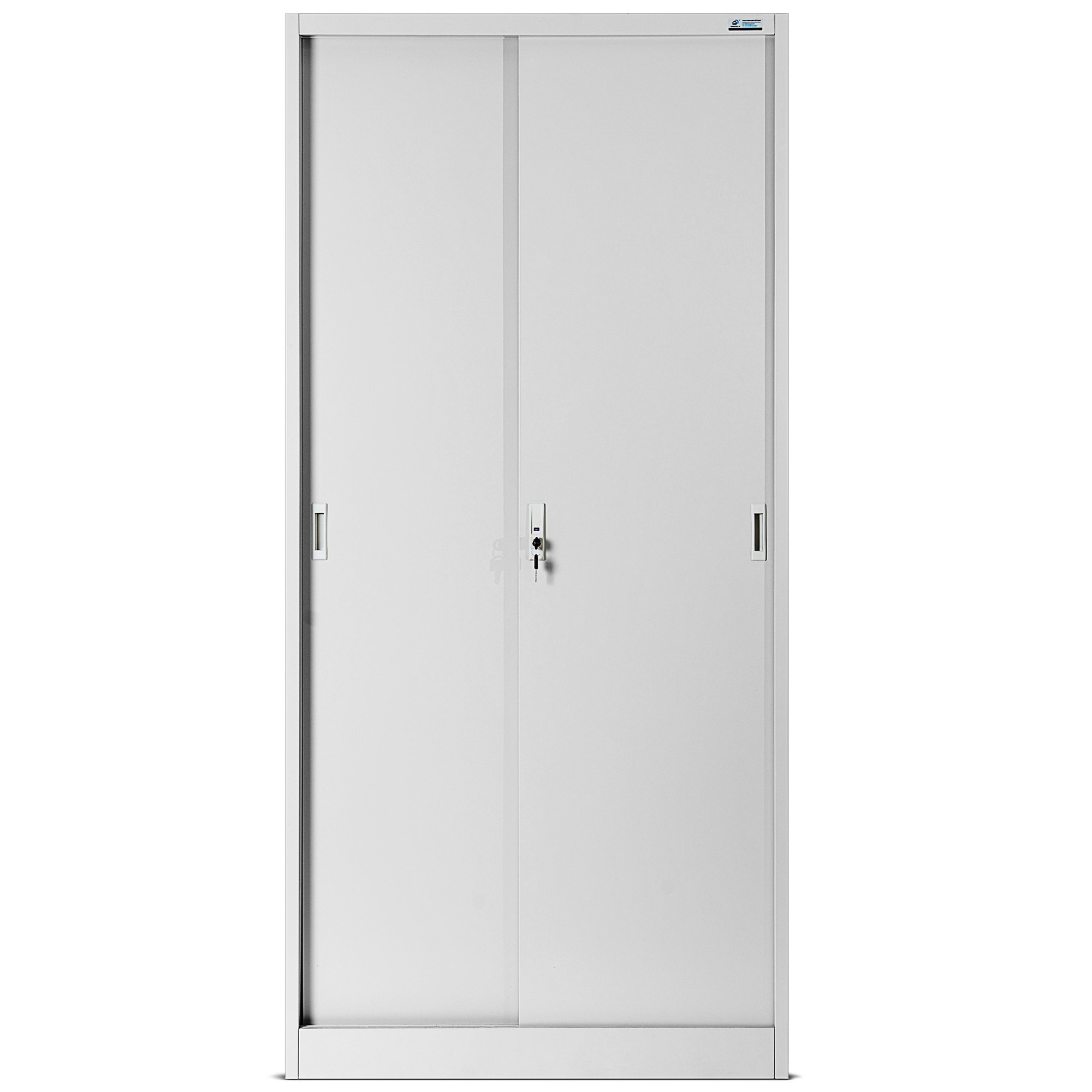 Kancelářská kovová skříň s posuvnými dveřmi KUBA, 900 x 1850 x 400 mm, šedá