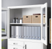 Skříň FILIP se díky svému elegantnímu designu a bílé barvě hodí do každého interiéru. Tvrzené sklo ve vitríně dodává skříni moderní a profesionální vzhled.