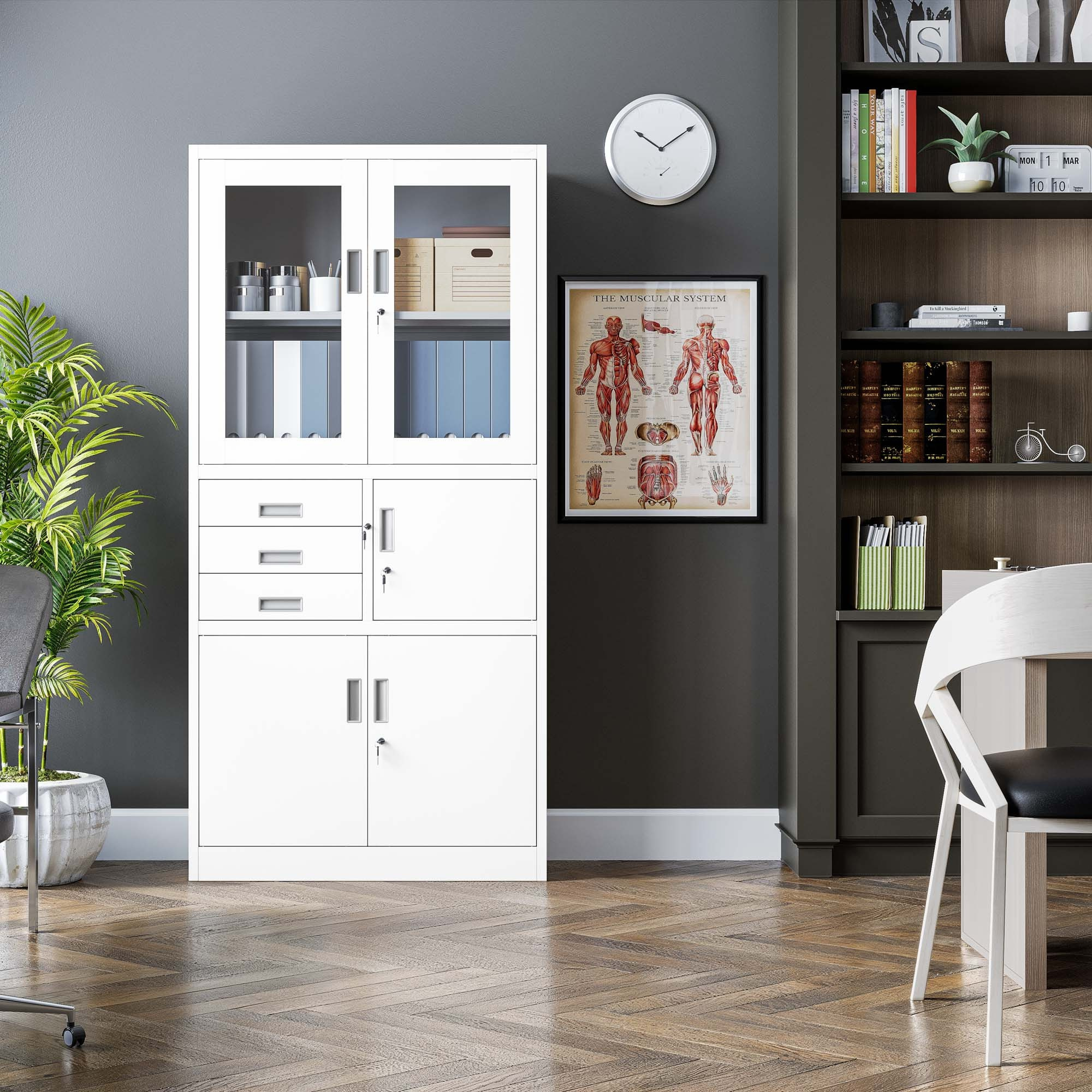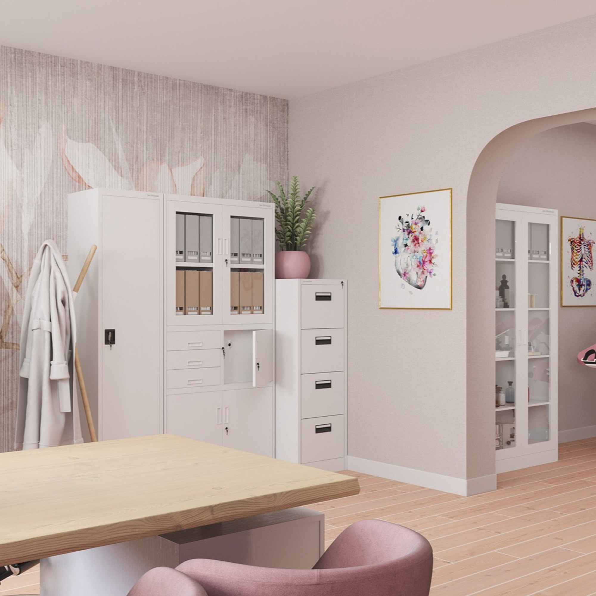 - Lékařská skříň na léky: Vhodná pro lékařské ordinace, kde je potřeba bezpečně uložit léky a zdravotnický materiál.