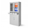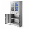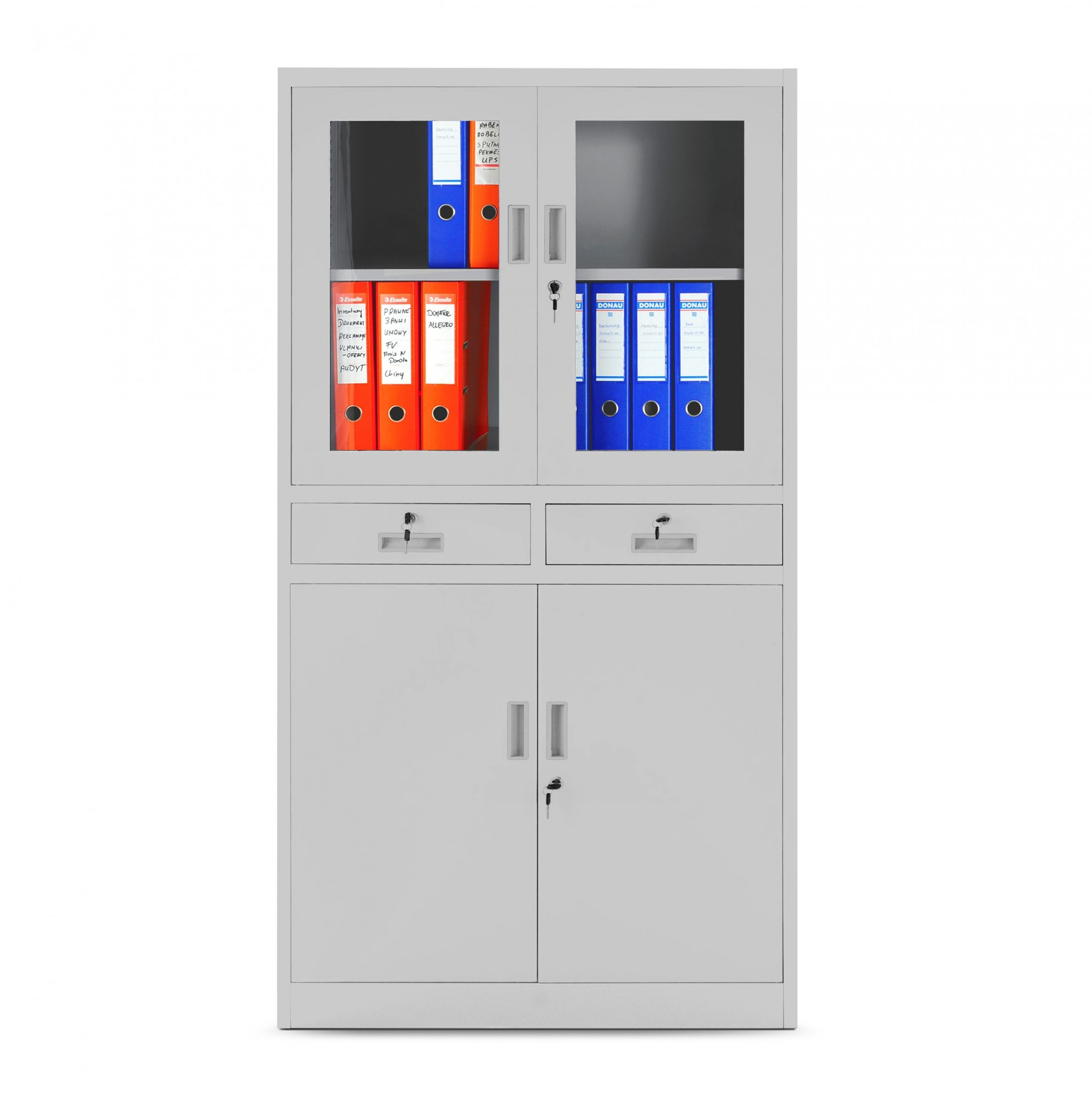 Kancelářská prosklená kovová skříň na dokumenty se zásuvkami EDMUND, 900 x 1850 x 400 mm, šedá