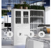 - Prosklená vitrína: Elegantní prosklená vitrína ve střední části skříně je ideální pro ukládání často používaných šanonů a dokumentů, které chcete mít neustále na očích.