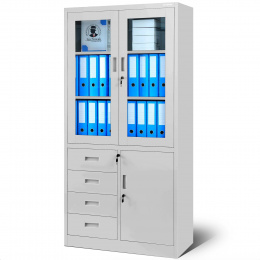 Prosklená kovová skříň WIOLA – Elegance a funkčnost pro vaši kancelář