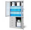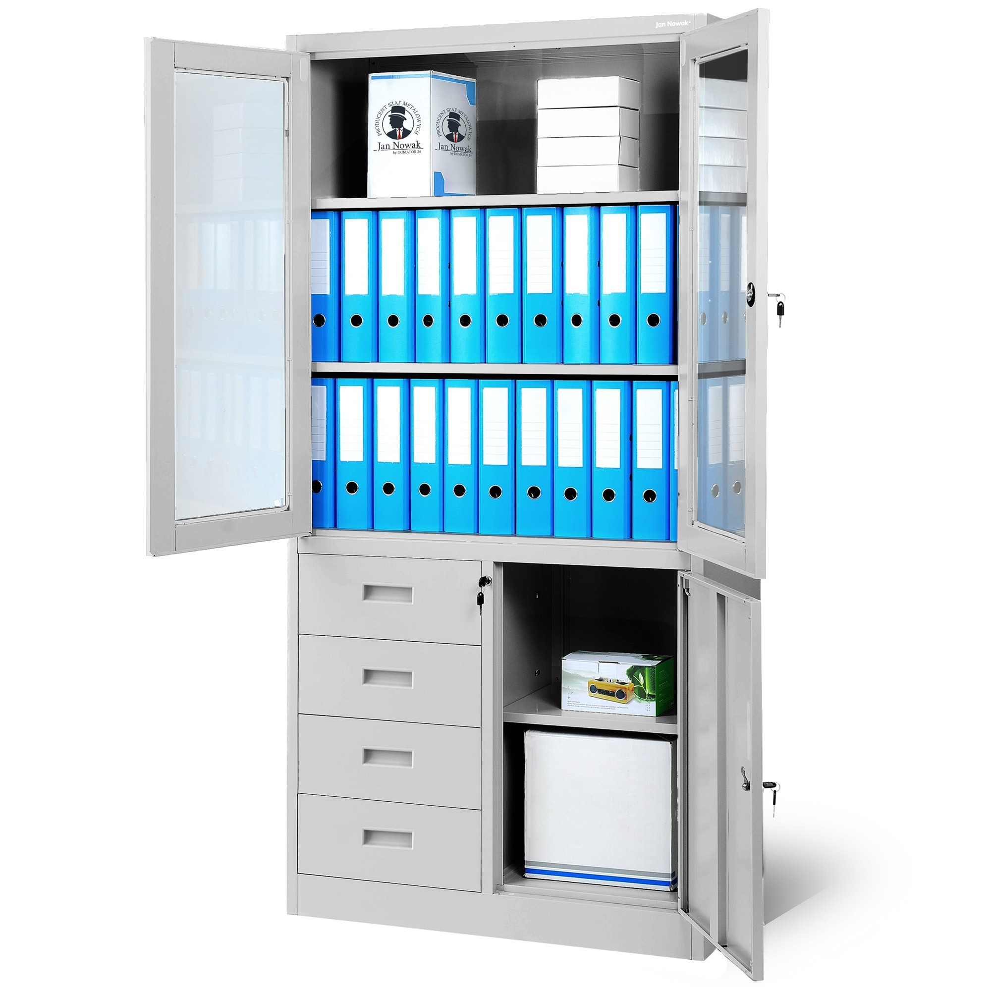 Kancelářská prosklená skříň s šuplíky WIOLA, 900 x 1850 x 400 mm, šedá