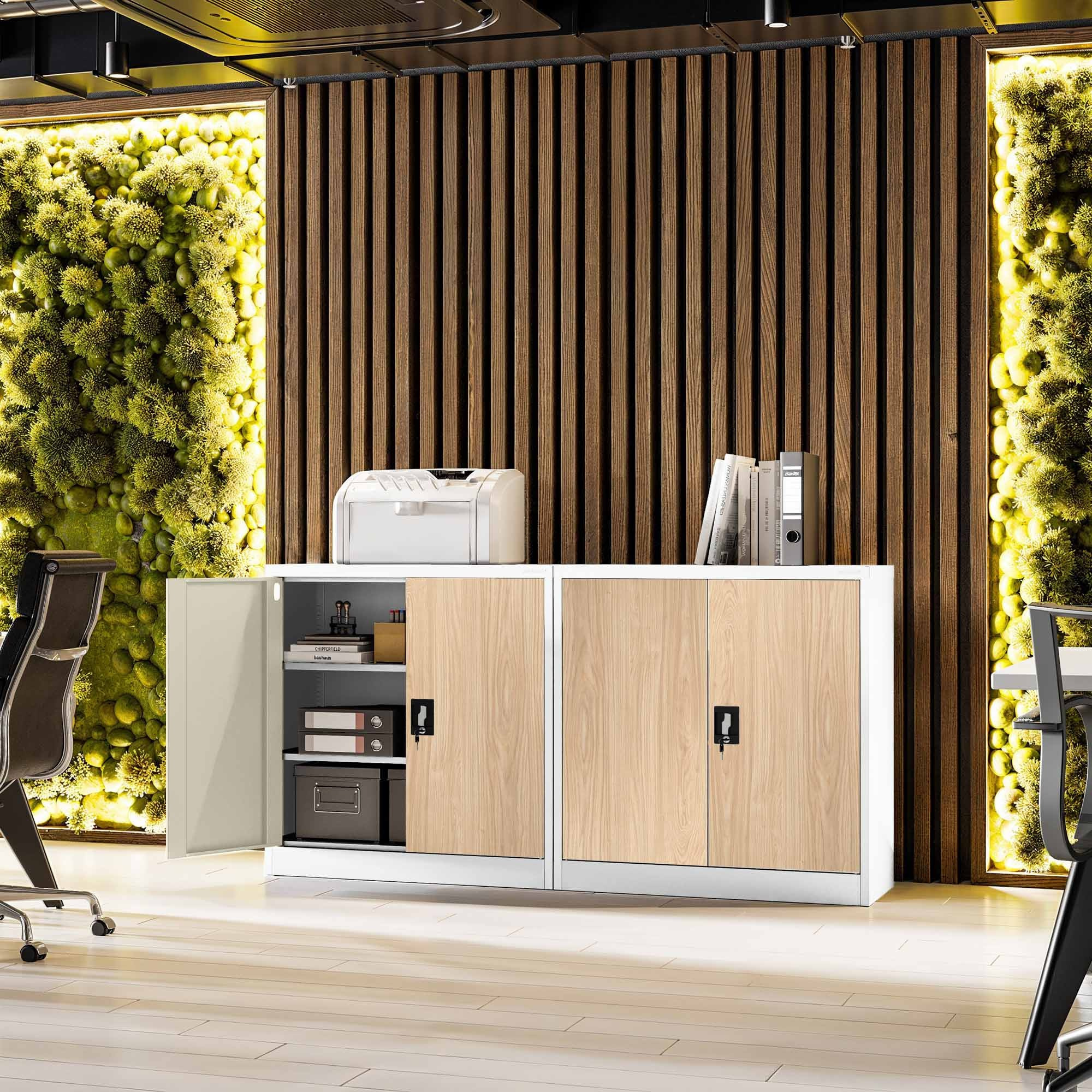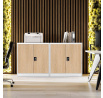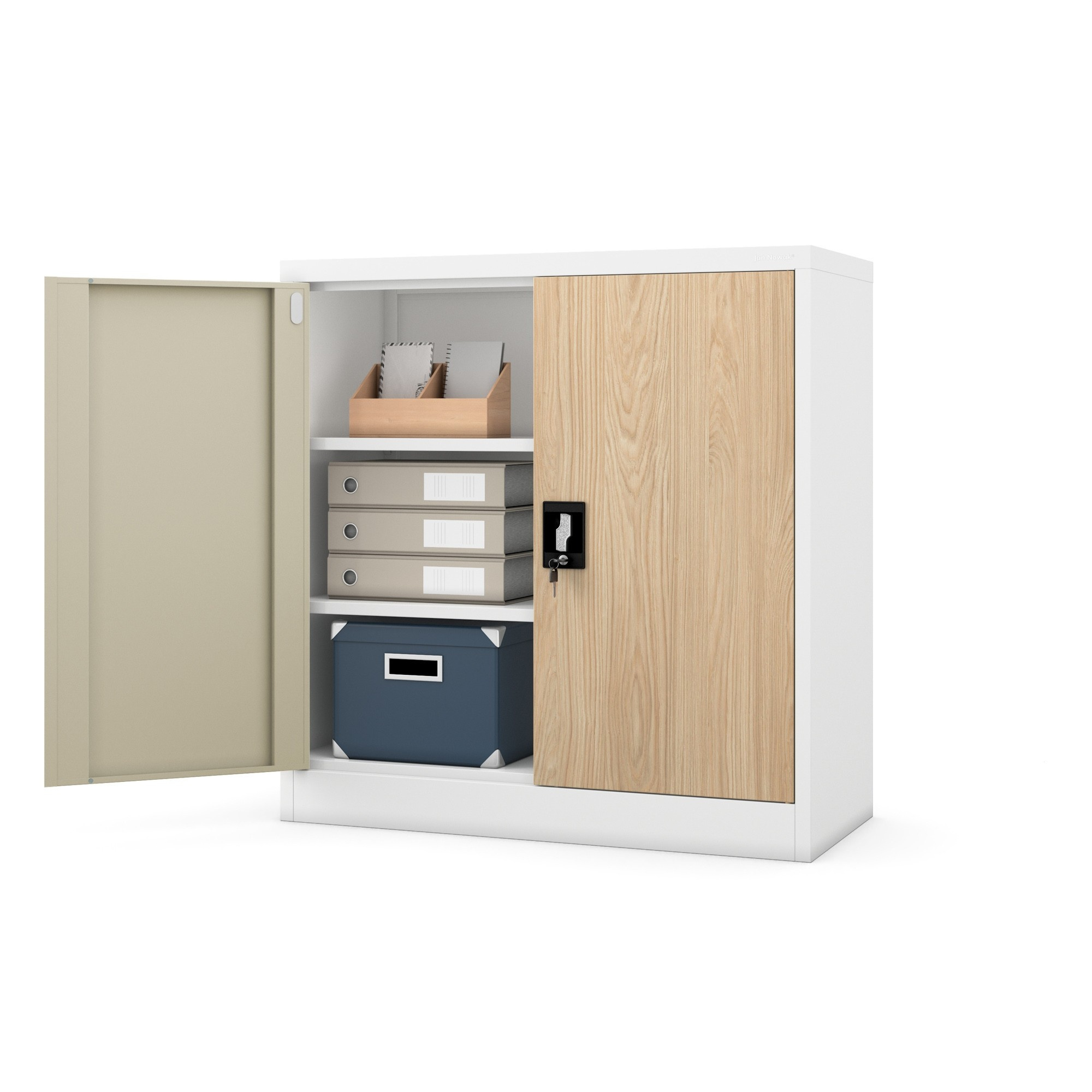 Skříňka BEATA se pyšní jedinečným designem, který kombinuje bílou barvu korpusu (RAL 9003) s dekorem dub sonoma na dvířkách. Tato kombinace vytváří elegantní a moderní vzhled, který se hodí do různých typů interiérů. Ať už máte kancelář zařízenou v minimalistickém, industriálním nebo klasickém stylu, skříňka BEATA se stane stylovým a funkčním doplňkem.