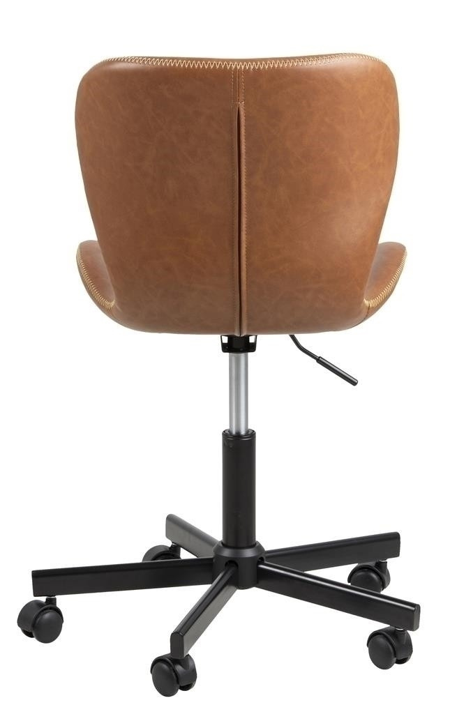 Pohodlné, měkké kancelářské křeslo Batilda je především ergonomicky tvarované křeslo, které nejen podpírá záda, ale také poskytuje oporu bokům a lopatkám. Křeslo Batilda je vybaveno sedákem vyplněným měkkou čalounickou pěnou a dokončeno ekologickou kůží PU retro leather look brandy 691B. Hladká struktura tkaniny dodává křeslu klasický vzhled. Křeslo má nastavitelnou výšku. Základem křesla je kovové rameno s pěti kolečky z plastu. Křeslo je také otočné. Max. výška 87 cm, Max, výška sedáku: 51,5 cm Min.výška: 80 cm, Min výška sedáku: 44,5 cm Počet kartonů: 1 Rozměry kartonů: 55x58x43 cm Hmotnost kartonů: 9,3 kg