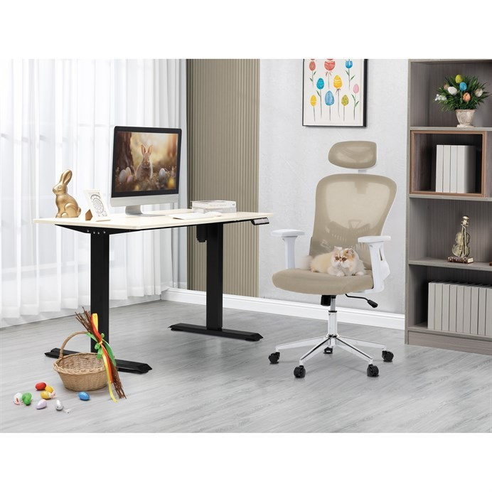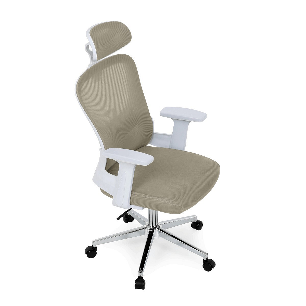Moderní kancelářská židle značky Autronic v elegantní béžové barvě kombinuje komfort a funkčnost pro každodenní práci. Sedák i opěrák jsou potaženy prodyšnou síťovinou, která zajišťuje optimální cirkulaci vzduchu a pohodlí i při delším sezení. Nastavitelné 2D područky umožňují individuální přizpůsobení podle potřeby. Stabilitu a pevnost zajišťuje chromový kříž s kolečky vhodnými na tvrdé podlahy, které umožňují plynulý pohyb. Stylová a praktická volba pro kanceláře i domácí pracovny.