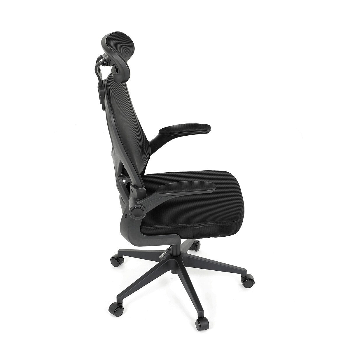 Černá kancelářská židle značky Autronic představuje ideální volbu pro moderní pracovní prostředí. Ergonomický design a kvalitní materiály, jako je síťovina a PU pěna, zajišťují pohodlí a podporu během dlouhých pracovních dnů. Židle je vybavena nastavitelnou opěrkou hlavy a bederní opěrkou pro optimální držení těla. Odklápěcí područky a funkce permanentního kontaktu přidávají na flexibilitě a komfortu. Černý plastový kříž s kolečky na tvrdé povrchy zaručuje stabilitu a snadnou mobilitu. Tato stylová a funkční židle je skvělou volbou pro každou kancelář.