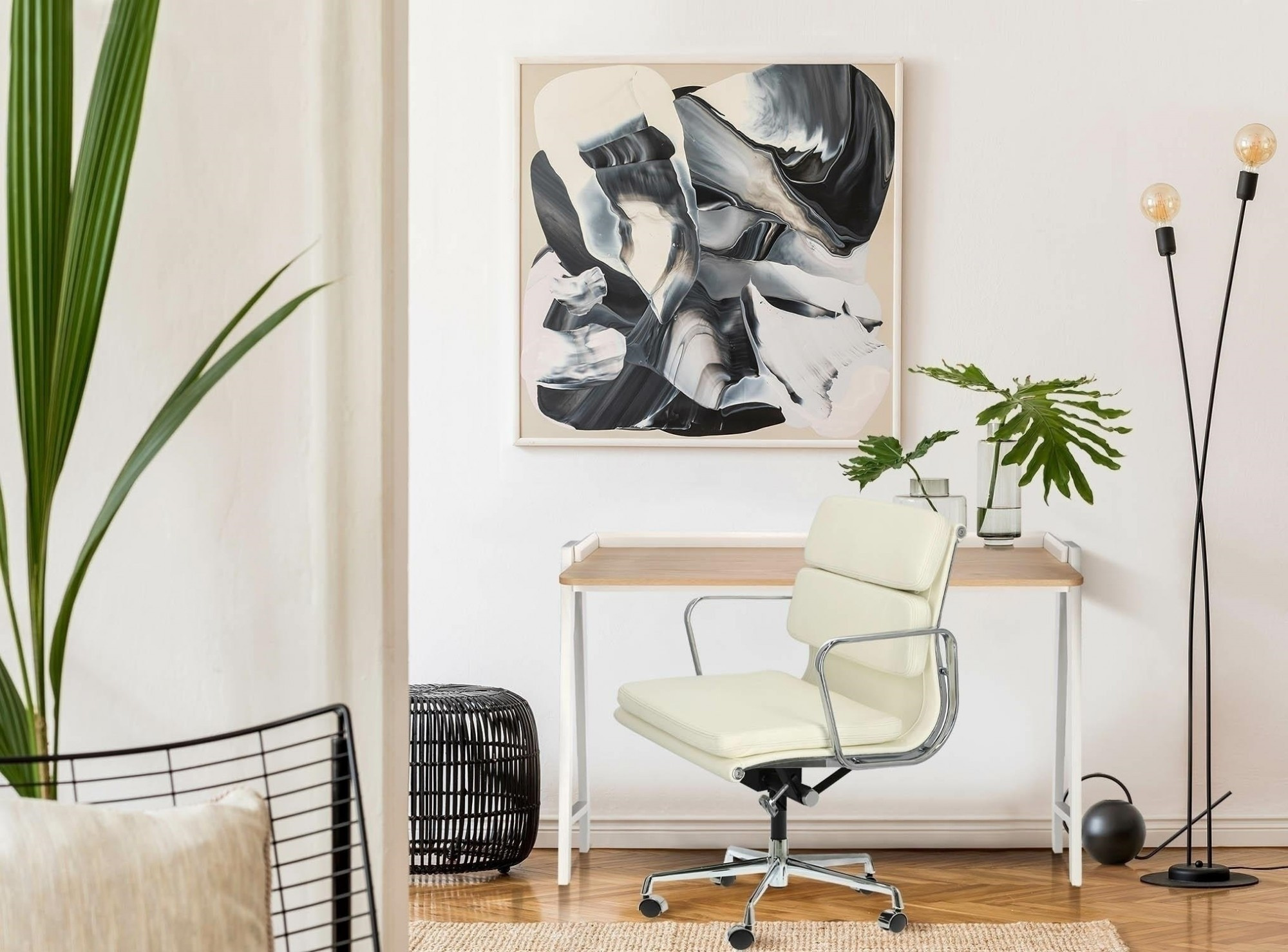 Židle je exkluzivnější verzí židle inspirované EA117. Sedák a opěradlo byly vyloženy měkkými polštáři, které zvyšují komfort používání. Základna na kolečkách je vyrobena z leštěného hliníku. Židle má mechanismus pro nastavení výšky a houpání. Výška: 79-88 cm, výška sedadla: 48-58 cm, výška područek: 65-75 cm