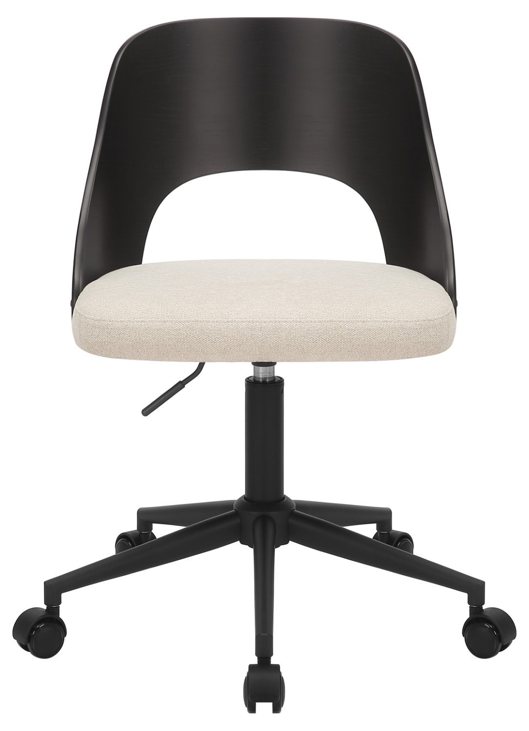 Navrženo, aby okouzlovalo. Židle k psacímu stolu Lucy s nastavitelnou výškou spojuje styl a funkčnost. Lakované černé opěradlo z dubové dýhy má jemný výřez a sedák s béžovým čalouněním z šenilu oslovuje smysly svou měkkou strukturou. Pro snadnější přesun má židle černou 5-ramennou otočnou základnu s kolečky s měkkou brzdou. Židle k psacímu stolu Lucy, látka Apia v béžové barvě 453 a dubová dýha lakovaná WB na černo, základna s 5 hvězdami z matné, černé, hrubé oceli lakované práškovou barvou s plynovým pístem, kolečky s měkkou brzdou a možností otáčení. Výška opěradla 39 cm Šířka sedáku 45 cm Hloubka sedáku 44 cm Maximální výška sedáku. 59,5 cm Minimální výška sedadla. 47,5 cm Max. zatížení 110 kg Váha křesla: 7,2 kg