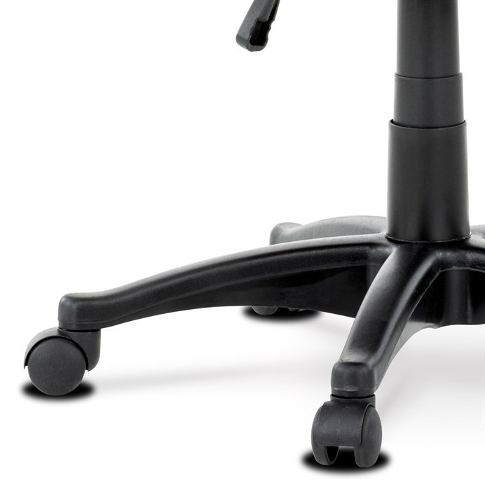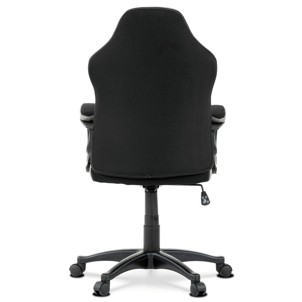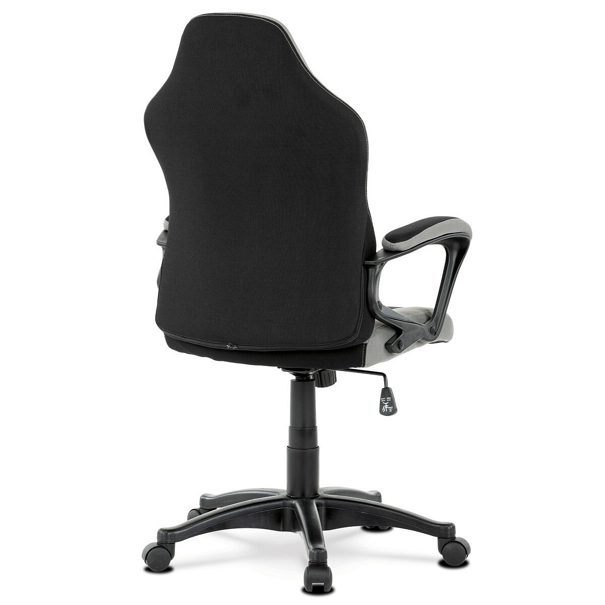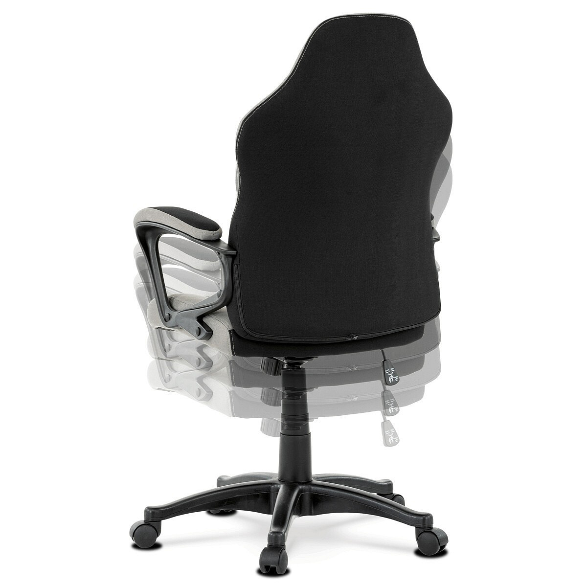 Elegantní kancelářská i herní židle se zaoblenými liniemi, obvodovým prošitím v šedé barvě a výrazným tvarovým prošitím sedáku i opěráku. Potah je kombinací černé a světle šedé látky hladké látky s decentním růžovým detailem na opěráku i sedáku. Polstrování je z kvalitní PU pěny. Židle je vybavena houpacím mechanismem s nastavením protiváhy a aretací v základní poloze. Tuhost protiváhy lze regulovat velkým plastovým šroubem, umístěným pod sedákem. Výška sezení se upravuje páčkou na pravé straně přes kvalitní plynový píst. Znavené ruce si velice pohodlně položíte na plastové područky, na ložné ploše polstrované černou a šedou látkou. Šíře područek je úžasných 7,5 cm, ložná plocha 31 cm a výška 3 cm. Opěrák je vyšší, částečně prodyšný a s integrovanou statickou opěrkou hlavy. Zvýšené okraje sedáku i opěráku podporují správné držení těla i páteře a slouží jako výborná opora. Kříž je černý plastový o průměru je 65 cm, což zajišťuje výbornou stabilitu i u fyzicky náročnějších her. Kolečka jsou plastová pr. 5 cm. Nosnost židle je až 120 kg.