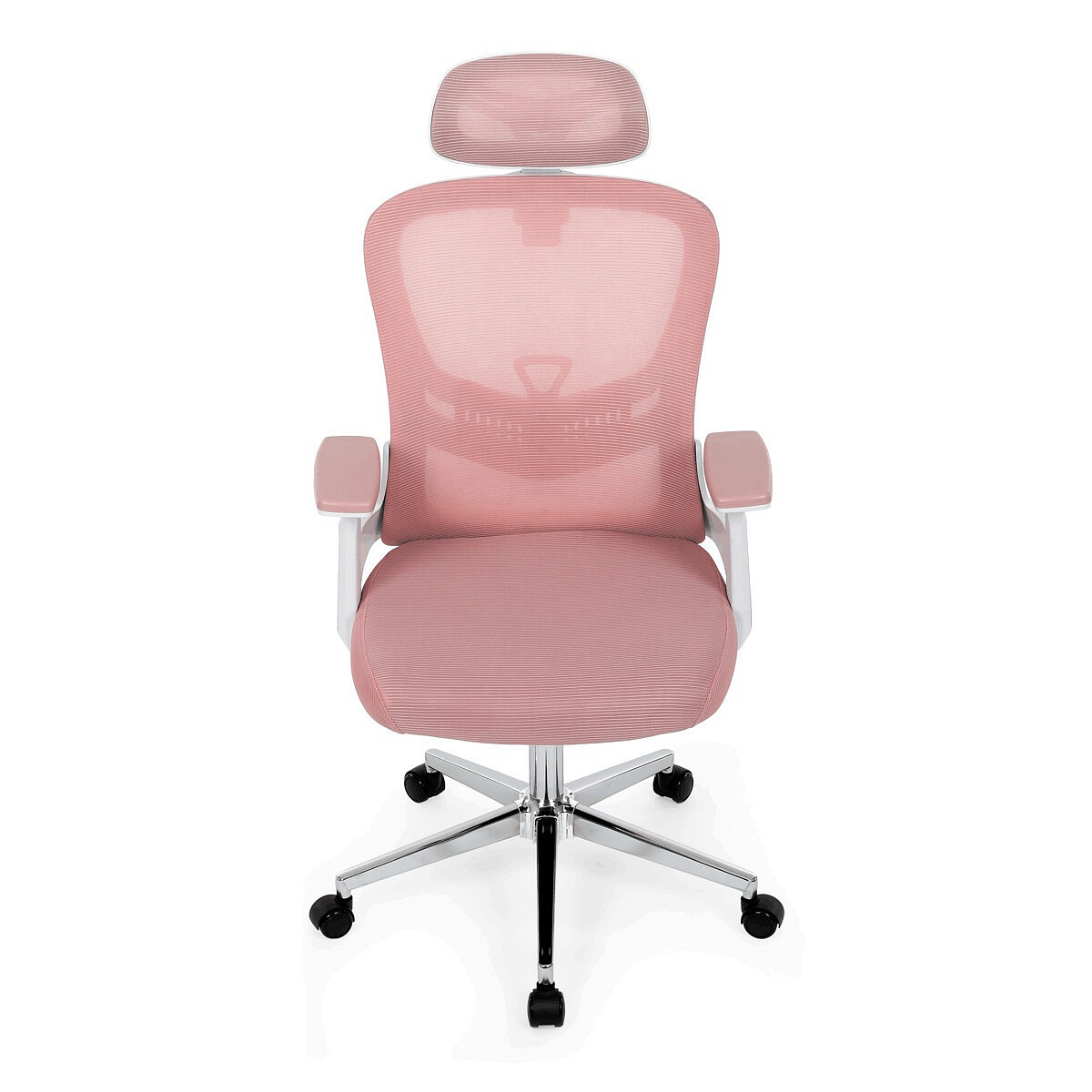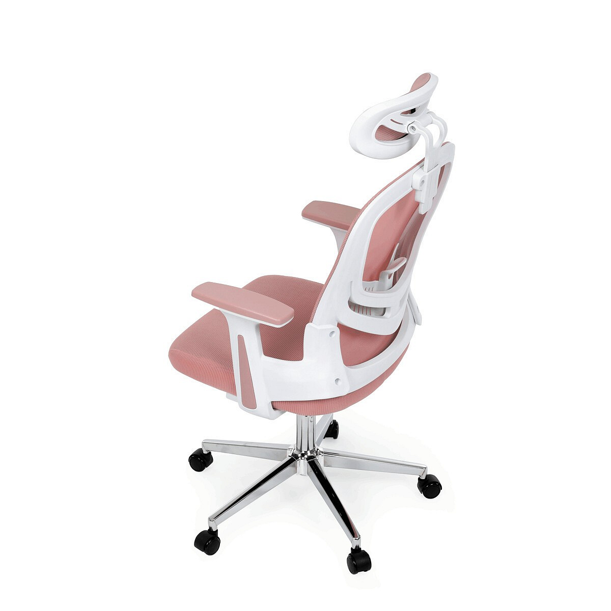 Elegantní a moderní kancelářská židle Autronic zaujme svým jedinečným designem a praktickými funkcemi. Růžová síťovina potahové látky nejen přidává na estetické hodnotě, ale také zajišťuje optimální prodyšnost během dlouhého sezení. Výškově nastavitelná bederní opěrka a opěrka hlavy nabízejí individuální komfort, který podporuje správné držení těla.