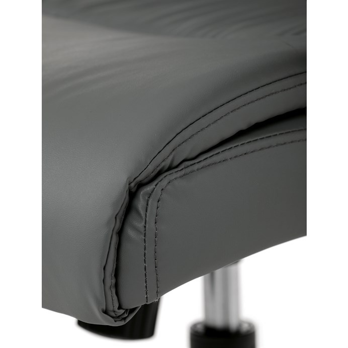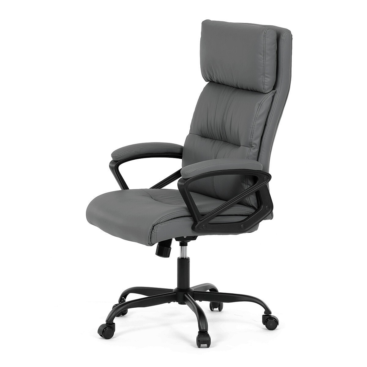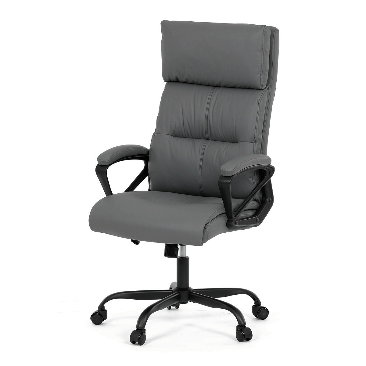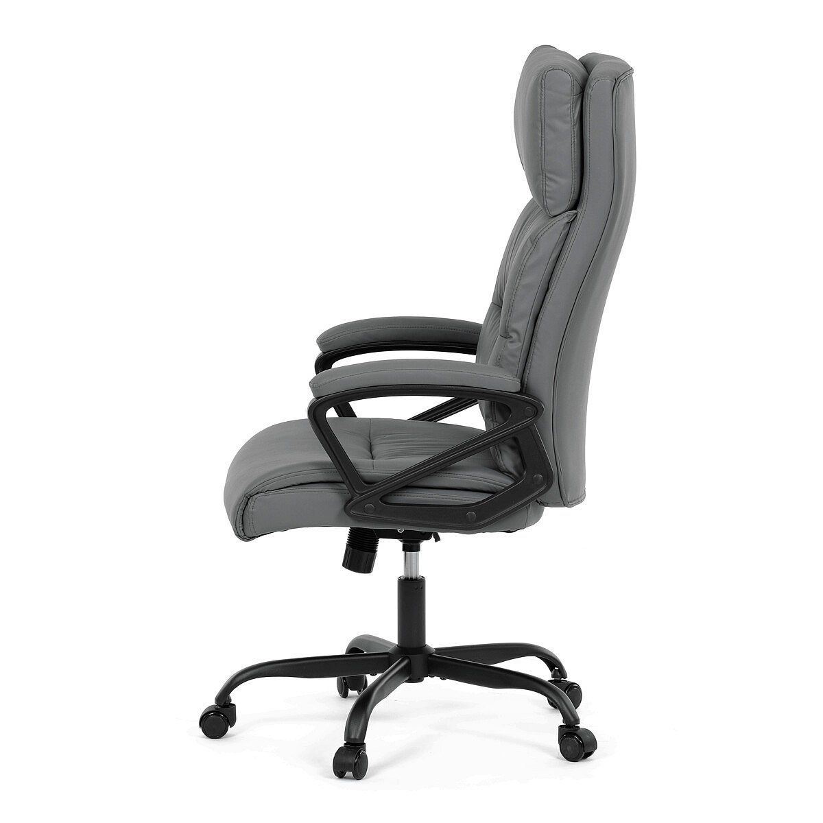 Pohodlná kancelářská židle značky Autronic v elegantním šedém provedení, která nabízí maximální komfort během pracovního dne. Židle je čalouněná kvalitní ekokůží, která je snadná na údržbu a příjemná na dotek. Robustní konstrukce a měkké PU pěnové výplně zajišťují dlouhodobou odolnost a pohodlí. Pevné područky a houpací mechanika přidávají na komfortu a poskytují potřebnou podporu. Tato moderní kancelářská židle je ideální volbou pro každou kancelář, kde se klade důraz na styl a pohodlí. Černý kovový kříž s kolečky na tvrdé povrchy zajišťuje stabilitu a snadnou mobilitu.