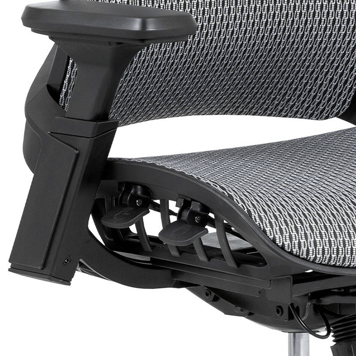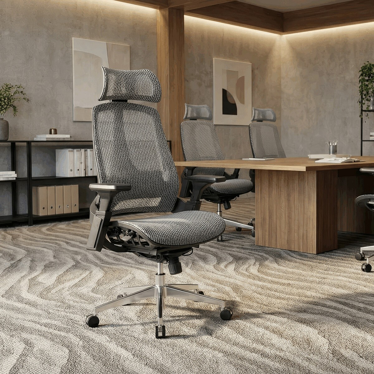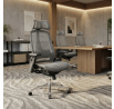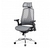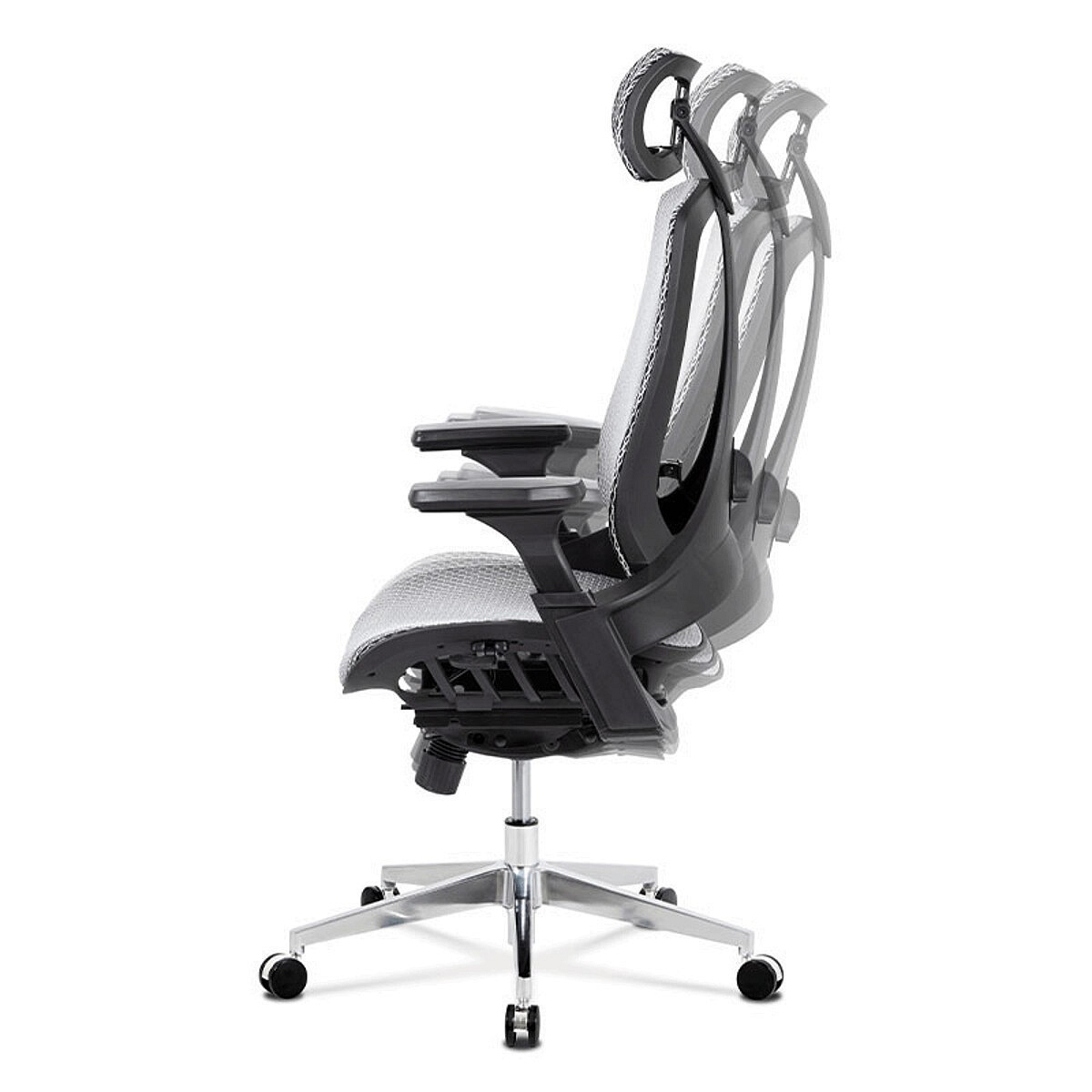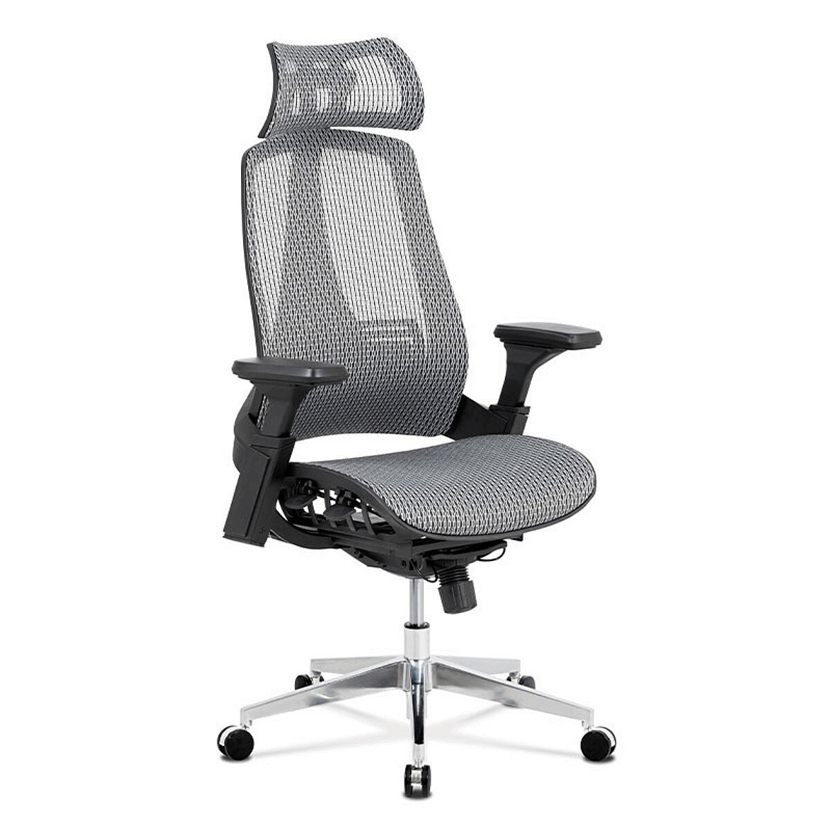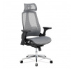 Kancelářská židle s šedou MESH síťovinou nabízí moderní a vzdušný design vhodný pro dlouhodobé sezení. Lankový synchronní mechanismus umožňuje plynulé nastavení opěráku i sedáku, včetně posuvu sedáku pro optimální ergonomii. Opěrák je vybaven výškově nastavitelnou bederní opěrkou a opěrkou hlavy, které podporují správné držení těla a snižují únavu během práce. Pevný kovový kříž zajišťuje stabilitu a odolnost, zatímco výškově nastavitelné područky přispívají k individuálnímu komfortu. Celkově je židle navržena pro dlouhou životnost a pohodlí v kancelářském prostředí.