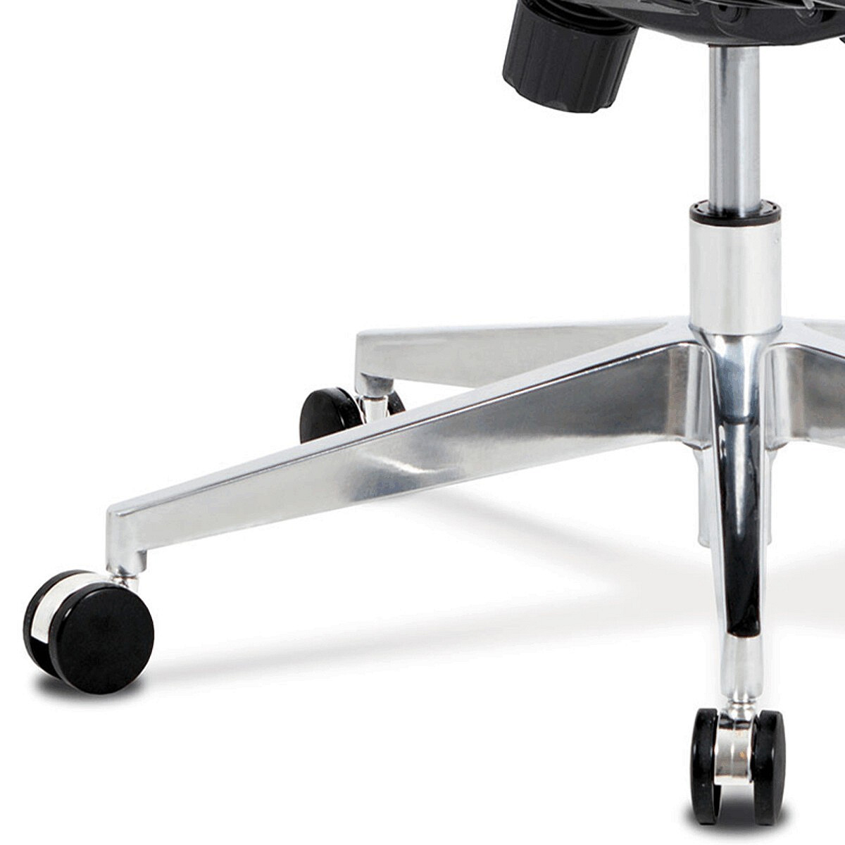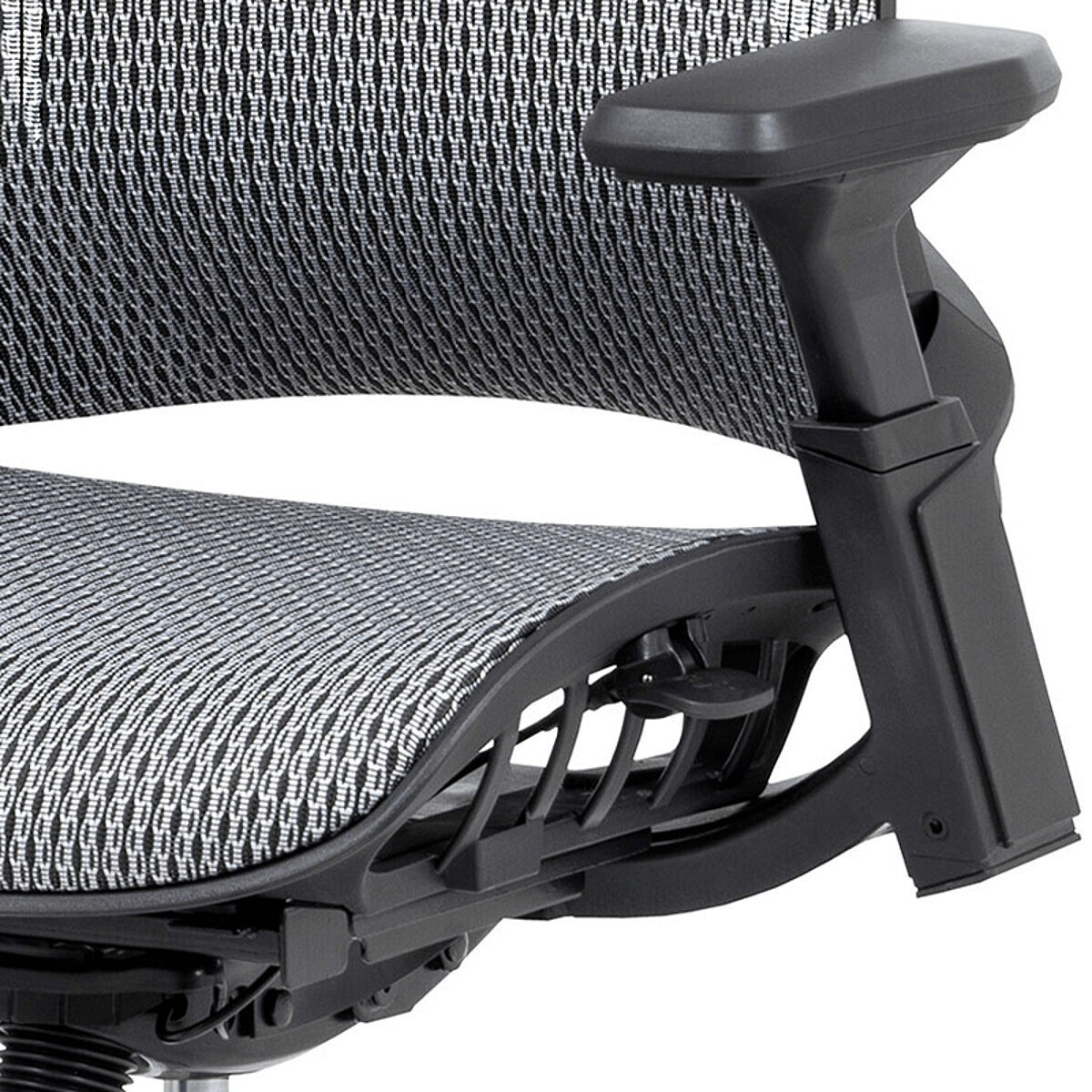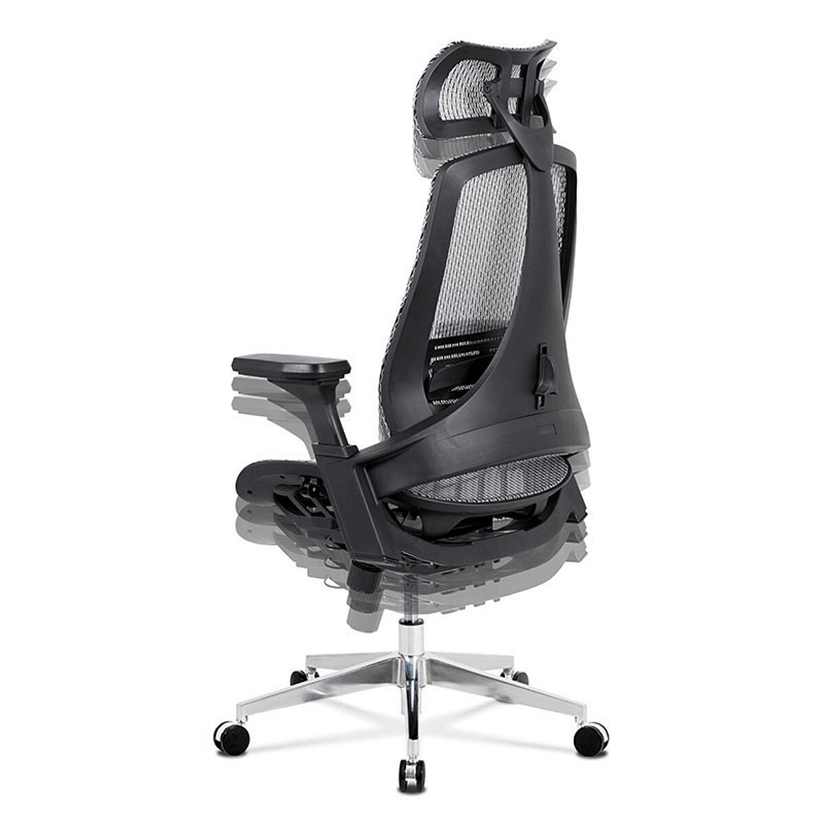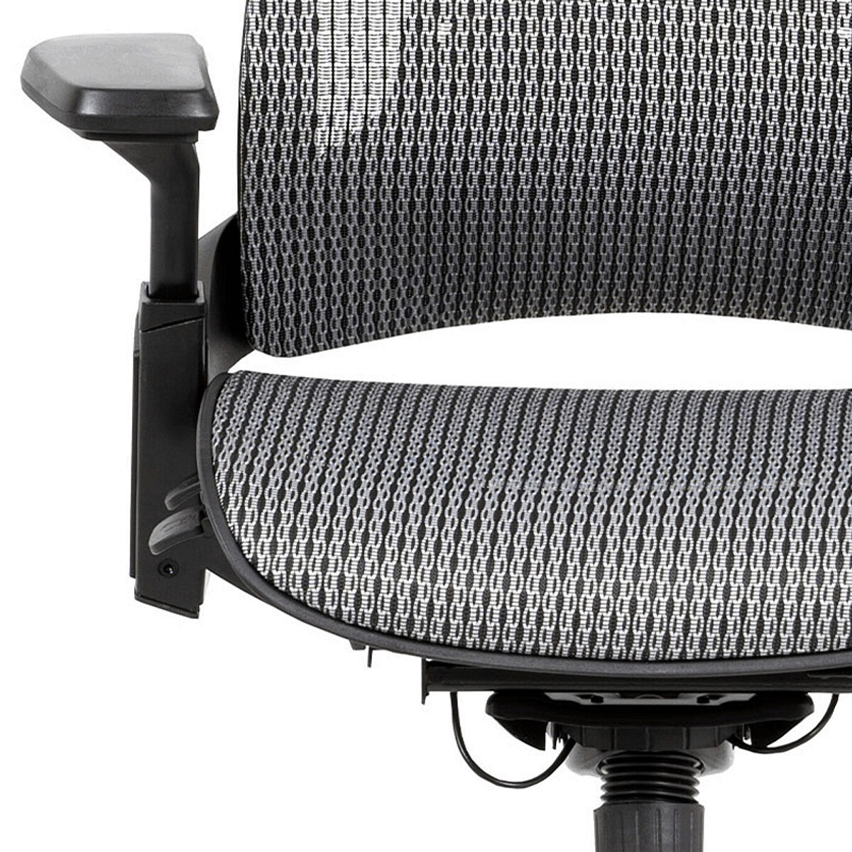 Kancelářská židle s šedou MESH síťovinou nabízí moderní a vzdušný design vhodný pro dlouhodobé sezení. Lankový synchronní mechanismus umožňuje plynulé nastavení opěráku i sedáku, včetně posuvu sedáku pro optimální ergonomii. Opěrák je vybaven výškově nastavitelnou bederní opěrkou a opěrkou hlavy, které podporují správné držení těla a snižují únavu během práce. Pevný kovový kříž zajišťuje stabilitu a odolnost, zatímco výškově nastavitelné područky přispívají k individuálnímu komfortu. Celkově je židle navržena pro dlouhou životnost a pohodlí v kancelářském prostředí.