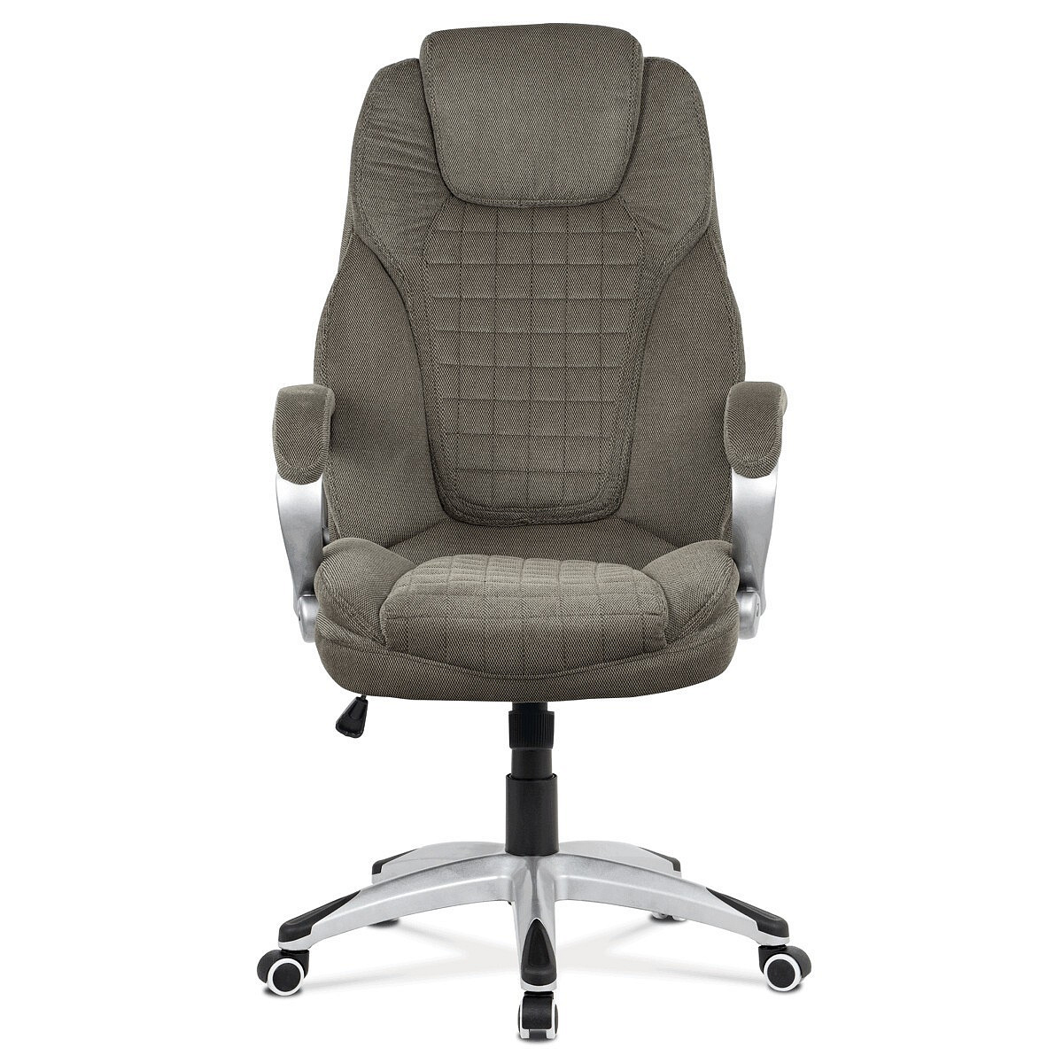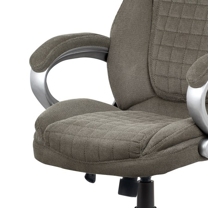 Moderní kancelářská židle potažená pololesklou šedou látkou vzor pepito. Díky ultra pohodlnému sedáku a opěráku s výjimečným polstrováním, které jsou stylově tvarované, s elegantním prošitím a se super měkkým podhlavníkem se budete cítit jako v business class nejlepší letecké společnosti. Ruce si můžete pohodlně opřít o pevné plastové područky šedé barvy s černými plastovými doplňky a polstrováním potaženým extra jemnou látkou. Židle má také i snadno omyvatelný, tvrzený, plastový kříž stříbrné barvy s černými protiskluzovými prvky a plastovými kolečky vhodnými na tvrdé typy podlah (dlažba, parkety, plovoucí podlahy apod.). Je výškově nastavitelná, s houpacím mechanismem a předním šroubem upravujícím tuhost pohupu a její nosnost je až 120 kg.