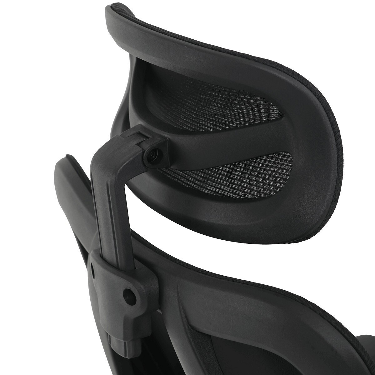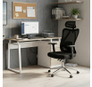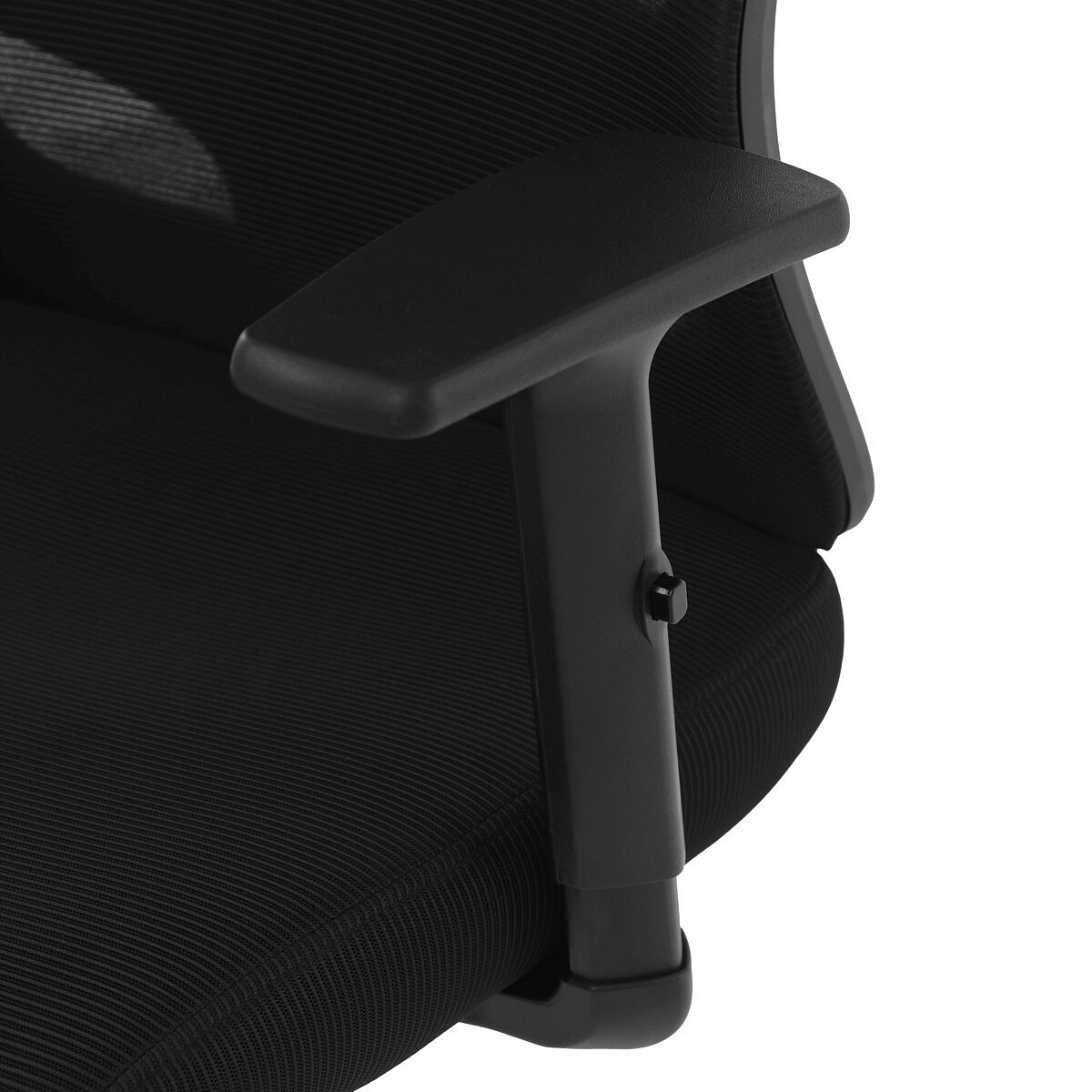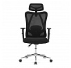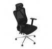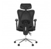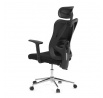 Kancelářská židle s označením KA-R216 BK nabízí komfortní sezení díky černému potahu z prodyšné síťoviny mesh, který zajišťuje optimální cirkulaci vzduchu. Opěrák je vybaven nastavitelným podhlavníkem a bederní opěrkou, které podporují správné držení těla během dlouhých pracovních hodin. Židle disponuje výškově nastavitelným mechanismem s polohováním opěráku. Pevný hliníkový kříž zaručuje stabilitu a odolnost, zatímco jednosměrně nastavitelné 1D područky přispívají k ergonomii a pohodlí. Celková konstrukce je navržena pro dlouhou životnost a nosnost odpovídající běžným kancelářským požadavkům.