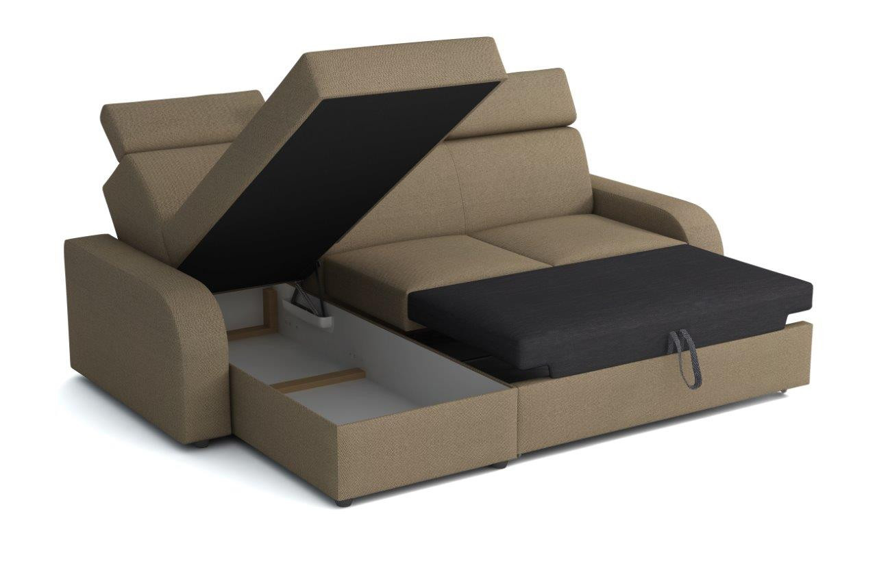 Sedací souprava Norway je vyrobena v jednoduché elegantní linii, které se hodí do moderního i klasického interiéru. Její velkou předností univerzální použití. Tzn. že si ji můžete podle potřeby sestavit jako levou nebo pravou, což je výhoda při zařizování obývacího pokoje. Nemusíte přemýšlet do jakého rohu sedací soupravu postavíte. Jednoduše si ji podle potřeby přizpůsobíte. Sedací souprava je rozkládací. Jednoduchým rozložením pomocí automatu, vytvoříte dostatečně velké lůžko k příležitostnému přespání Vaší návštěvy. Samozřejmostí je i praktický úložný prostor, který můžete využít např. na lůžkoviny. Sedací souprava je potažena kvalitní látkou a nabízíme ji v několika odstínech. Výplň sedáků tvoří kombinace pružin s kvalitní PUR pěnou, což zajišťuje velmi pohodlné sezení. Pro pohodlí při sezení a odpočinku, je sedací souprava vybavena polohovacími opěrkami hlavy. Vyobrazené doplňky a dekorace nejsou v ceně. Zobrazení barev na fotografii se může od skutečnosti lišit.