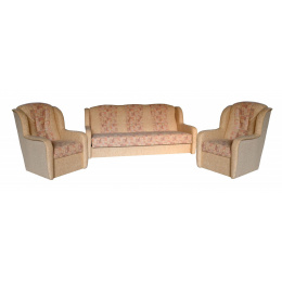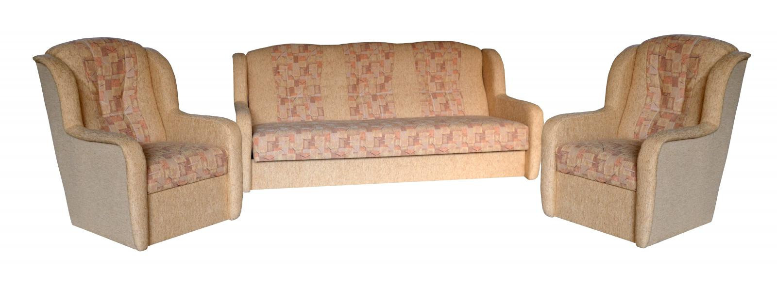 Ušák je stále velmi oblíbeným klasickým modelem sedací soupravy v provedení 3F+1+1. Je velmi pohodlná a zároveň praktická. Sedací souprava je rozkládací a samozřejmostí je i úložný prostor. Jednoduchým rozkladem pomocí systému "klik klak" vznikne lůžko k příležitostnému přespání Vaší návštěvy. Sedací souprava je potažena kvalitní látkou a nabízíme ji v několika barvách, ze kterých si určitě vyberete tu nejvhodnější pro Váš obývací pokoj. Výpň sedáků tvoří pružiny v kombinaci s kvalitní PUR pěnou. Tato kombinace zajistí velmi pohodlné sezení. Cena sedací soupravy je uvedena za rozkládací trojsed a dvě křesla.