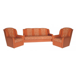 Ušák je stále velmi oblíbeným klasickým modelem sedací soupravy v provedení 3F+1+1. Je velmi pohodlná a zároveň praktická. Sedací souprava je rozkládací a samozřejmostí je i úložný prostor. Jednoduchým rozkladem pomocí systému "klik klak" vznikne lůžko k příležitostnému přespání Vaší návštěvy. Sedací souprava je potažena kvalitní látkou a nabízíme ji v několika barvách, ze kterých si určitě vyberete tu nejvhodnější pro Váš obývací pokoj. Výpň sedáků tvoří pružiny v kombinaci s kvalitní PUR pěnou. Tato kombinace zajistí velmi pohodlné sezení. Cena sedací soupravy je uvedena za rozkládací trojsed a dvě křesla.