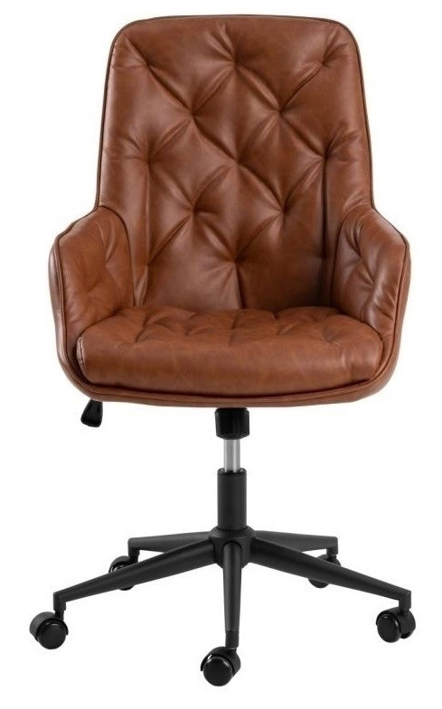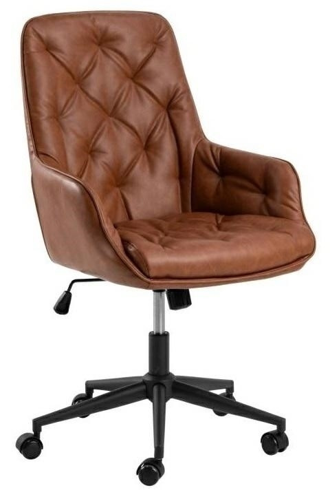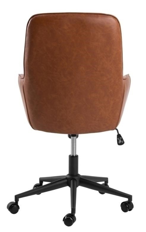 Uvolněte svou kreativitu a produktivitu díky kancelářské židli s nastavitelnou výškou v čalounění z umělé kůže v barvě brandy - ideální spojení estetiky a funkčnosti. Díky prošívaným detailům dodá křeslo vaší místnosti špetku stylu. Aby zajistit pohodlí, má funkci otáčení a kolečka s brzdou, která zajišťuje křeslo, když není používáno. Křeslo je vybaveno plynovým pístem, který umožňuje nastavení výšky o 10 cm. Výška sedáku 47-57 cm Výška opěradla: 51 cm Hloubka sedáku: 48,5 cm Šířka sedáku: 45 cm Výška područek 15 cm Hloubka područek 30 cm Max. zatížení 110 kg Váha: 11,5 kg Rozměry kartonu: 62x71x62 cm