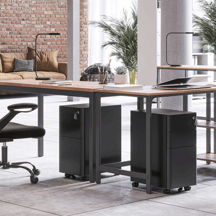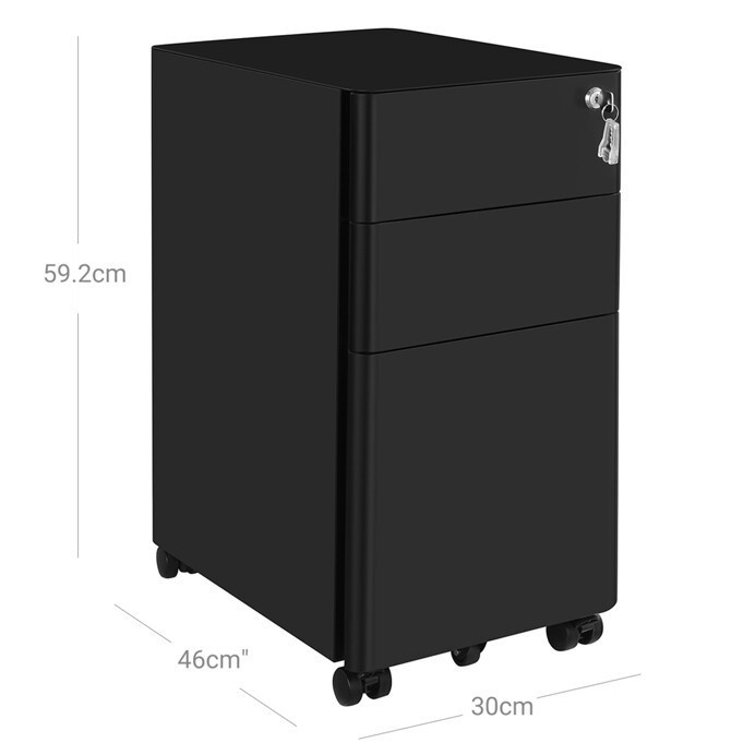 Pojízdné zásuvky v černém kovovém provedení představují praktické řešení pro organizaci kancelářských potřeb. Kovová konstrukce zajišťuje pevnost a stabilitu, zatímco tři zásuvky nabízejí dostatek úložného prostoru pro dokumenty i drobné předměty. Zásuvky jsou vybaveny zámkem s klíčem pro bezpečné uschování důležitých věcí. Díky přídavným kolečkům je možné zásuvky snadno přesouvat podle potřeby, což zvyšuje flexibilitu pracovního prostoru. Kompaktní rozměry umožňují umístění pod pracovní stůl nebo do volného kouta kanceláře.