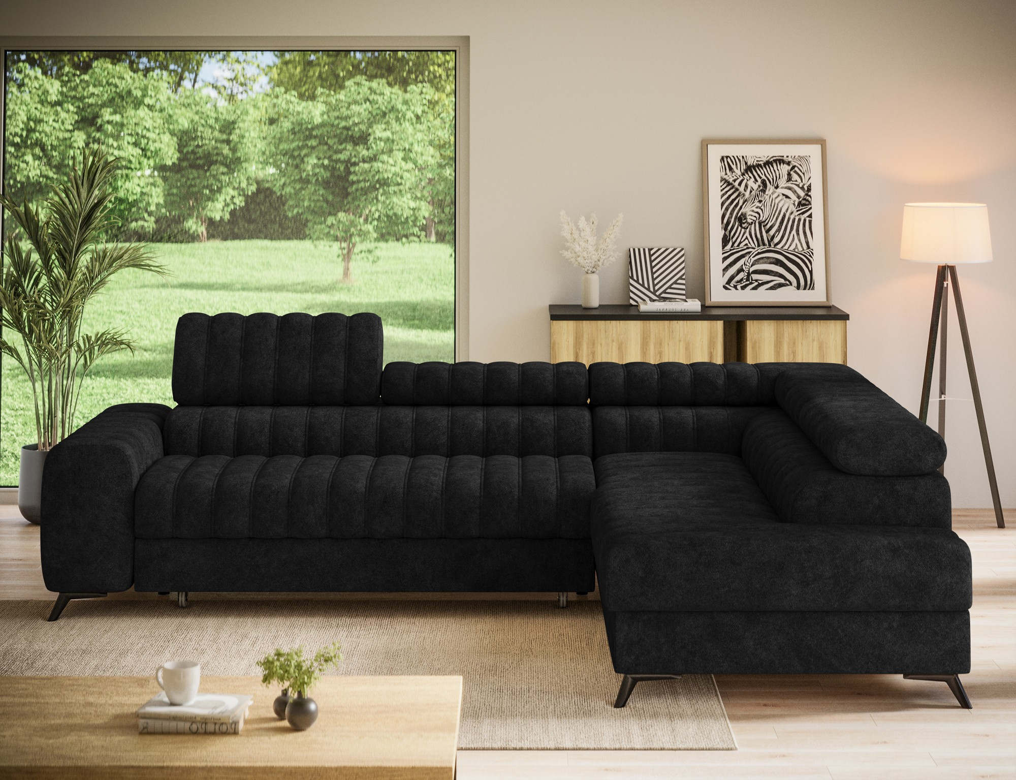 Rohová sedací souprava KANEDO je ideální volbou pro ty, kteří hledají spojení moderního designu, funkčnosti a komfortu. Její praktické funkce a elegantní vzhled z ní činí perfektní doplněk pro každý obývací pokoj. Nechte se okouzlit jejím stylem a užijte si chvíle relaxace v pohodlí vašeho domova.