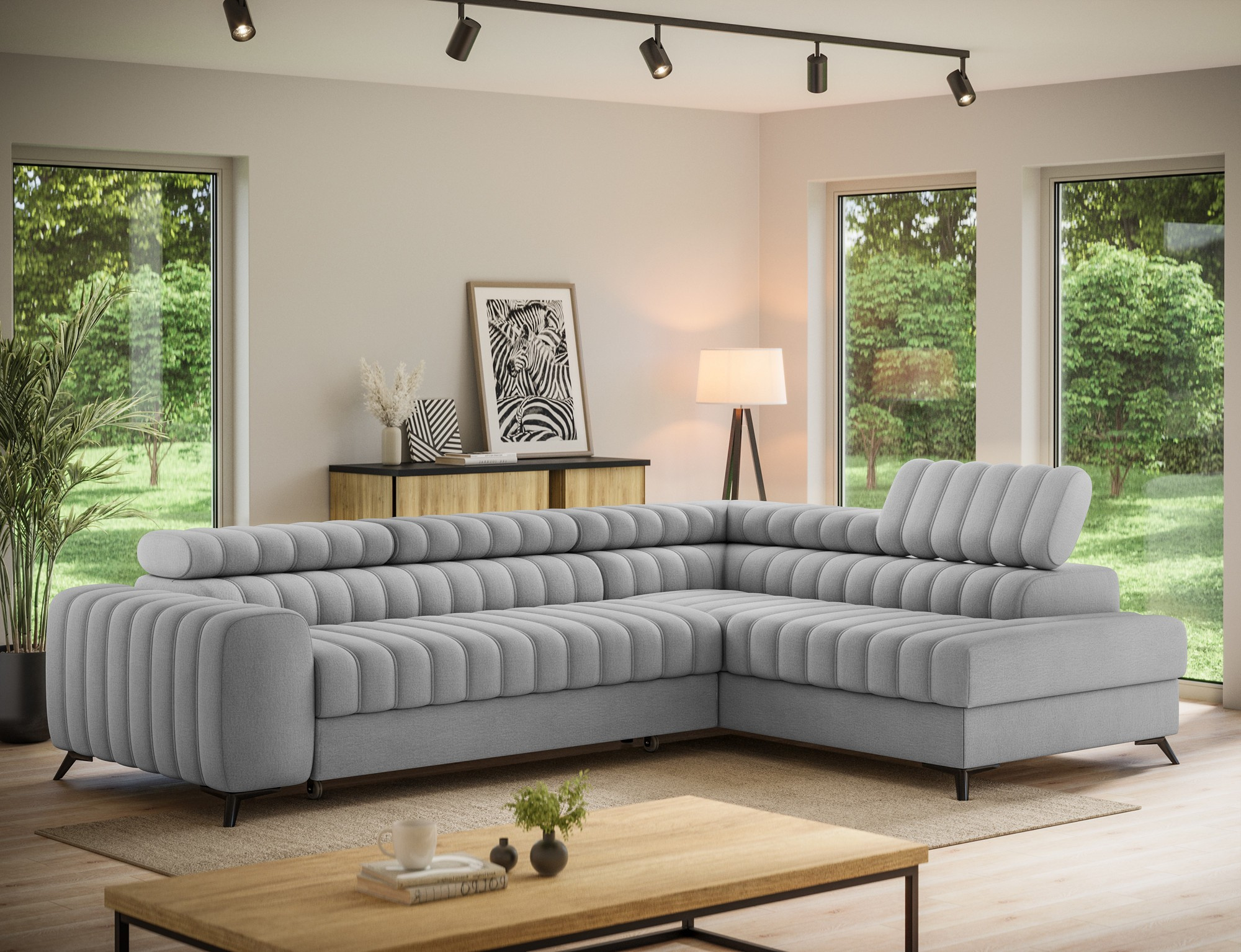Rohová sedací souprava KANEDO je ideální volbou pro ty, kteří hledají spojení moderního designu, funkčnosti a komfortu. Její praktické funkce a elegantní vzhled z ní činí perfektní doplněk pro každý obývací pokoj. Nechte se okouzlit jejím stylem a užijte si chvíle relaxace v pohodlí vašeho domova.