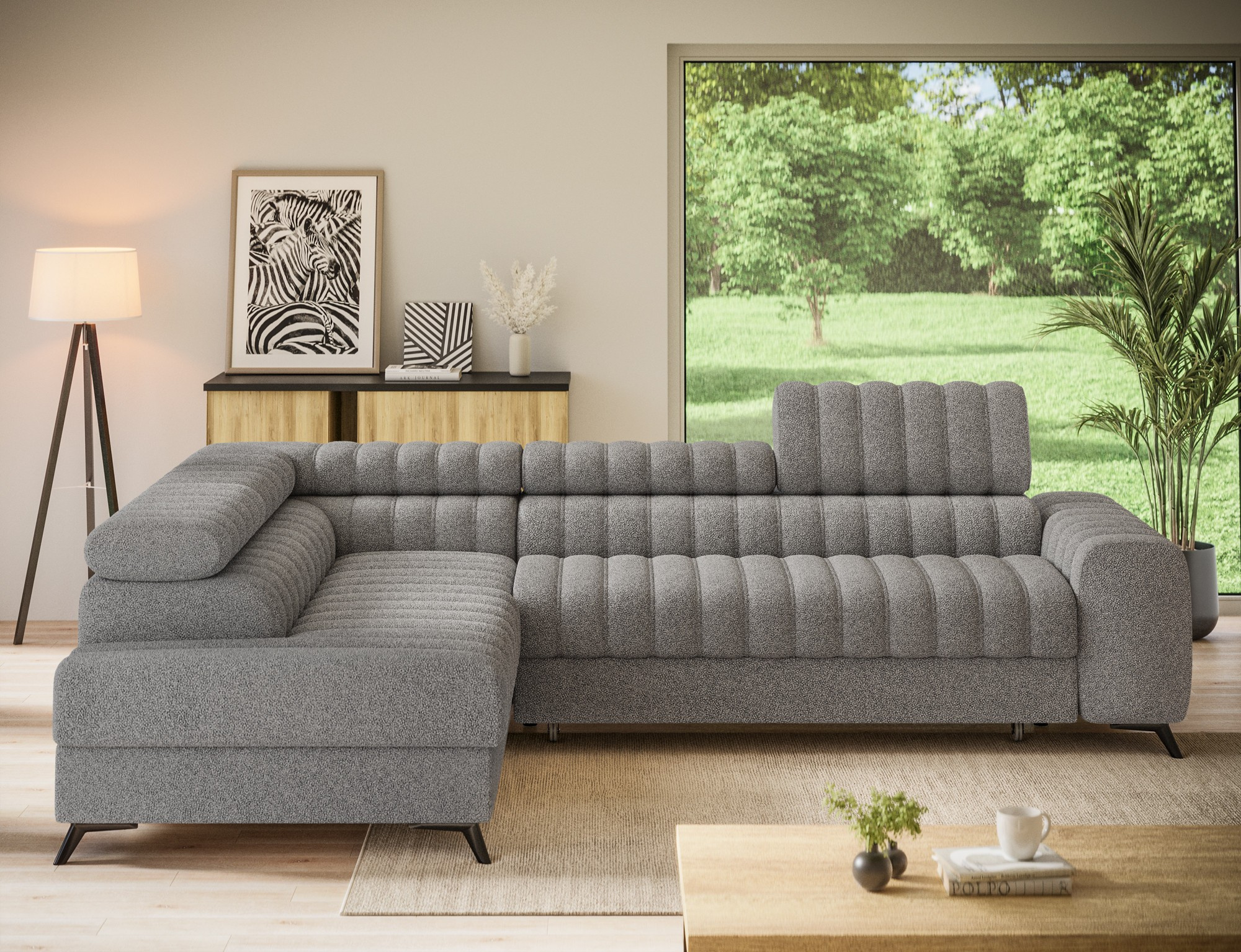 Rohová sedací souprava KANEDO je ideální volbou pro ty, kteří hledají spojení moderního designu, funkčnosti a komfortu. Její praktické funkce a elegantní vzhled z ní činí perfektní doplněk pro každý obývací pokoj. Nechte se okouzlit jejím stylem a užijte si chvíle relaxace v pohodlí vašeho domova.