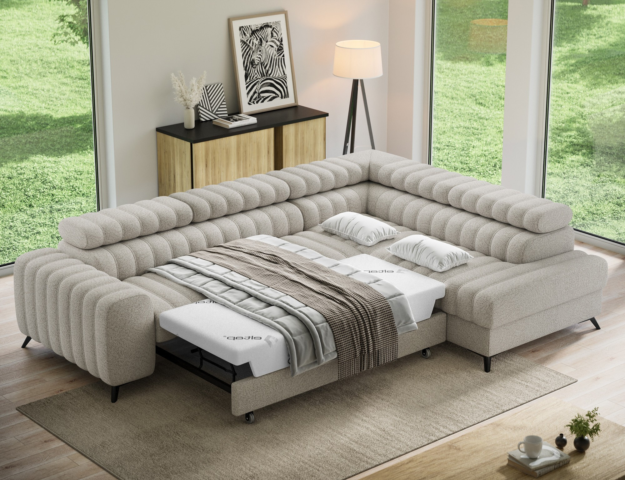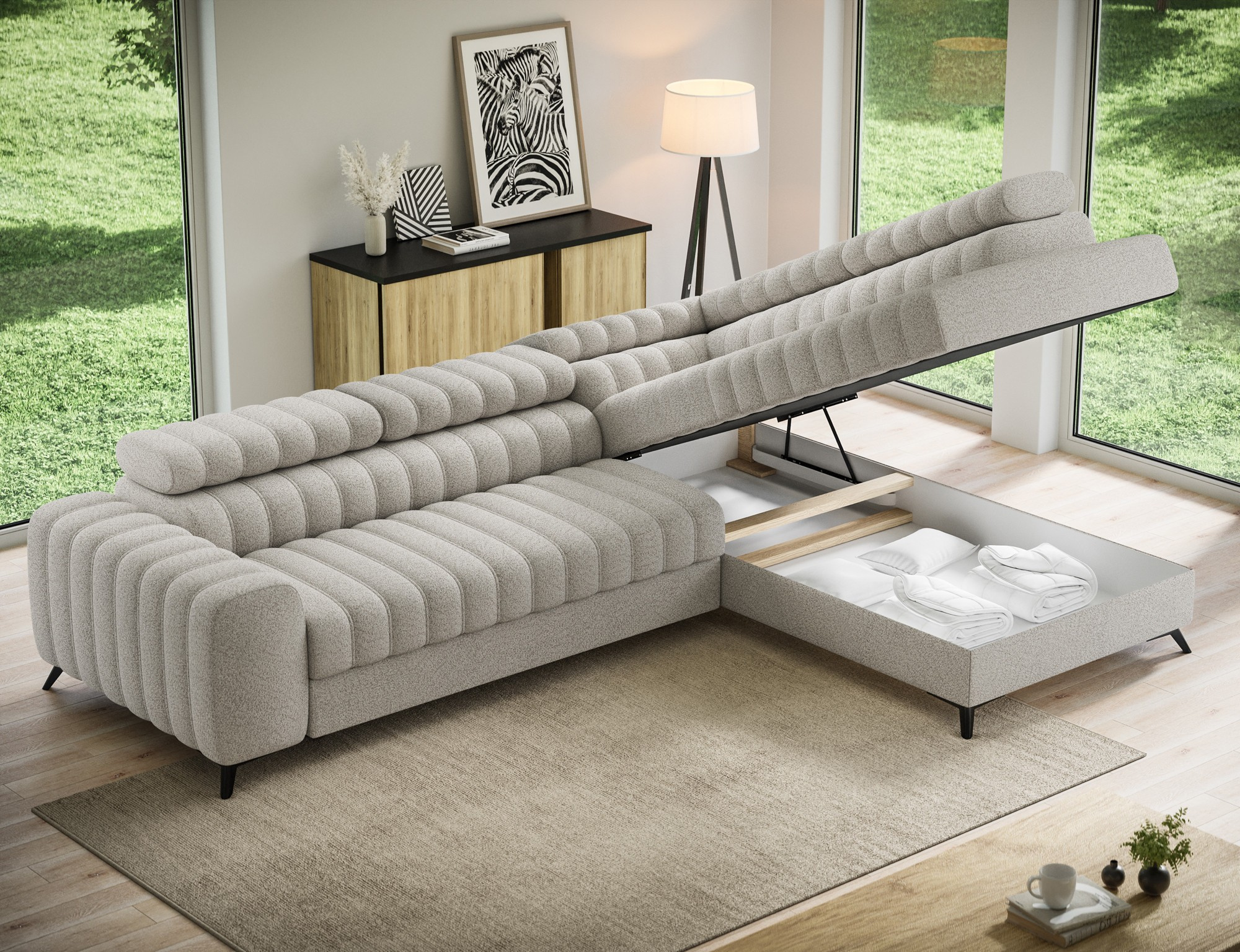 - Úložný prostor: Souprava je vybavena praktickým úložným prostorem, který vám umožní snadno uschovat deky, polštáře nebo jiné předměty, které chcete mít po ruce, ale zároveň je mít úhledně uklizené.