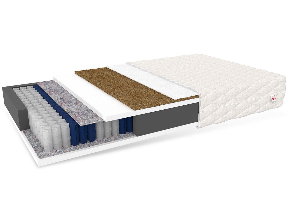 Matrace FAMILY je ideálním řešením pro jednu nebo dvě osoby. Jádro matrace tvoří taštičková výplň. Kapesní pružiny jsou vyrobeny technologií NanoHARD, jejíž drát tvrzený pod vodou výrazně prodlužuje jejich životnost. Díky použití 7 zón s různou tvrdostí poskytuje matrace ergonomickou polohu těla při odpočinku. Nezávislá práce pružin eliminuje vliv ohýbání velké plochy matrace při tlaku na její malou plochu. Tímto způsobem druhá osoba nepocítí žádné otáčení nebo vrtání. Vložka kapsy je obklopena polyuretanovou pěnou T25, která je odolná proti deformaci. Vrstva kokosového ořechu zajišťuje jednostranné vyztužení matrace. Kokosová vlákna jsou lehká a vzdušná a zároveň velmi trvanlivá a pružná, odolná vůči vlhkosti a deformaci. Mají také řadu antialergických vlastností. Specifikace: tvrdost: H4 hard; H3 medium hard, tloušťka: 18 cm. Složení: kokosová vložka: 1 cm, klimatizační vlákno: 1 ks., Polyuretanová pěna T25: 2 cm, Potah: 1 cm, Výška pružiny: 12 cm, Polyuretanová pěna T25: 2 cm.