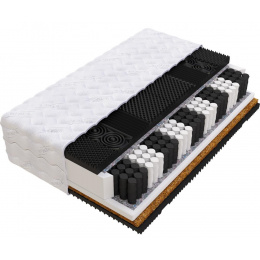 Základem matrace GINASO MAX je kapsový formát. Kapesní pružiny jsou vyrobeny technologií NanoHARD, jejíž drát tvrzený pod vodou výrazně prodlužuje jejich životnost. Díky použití 7 zón s různou tvrdostí poskytuje matrace ergonomickou polohu těla při odpočinku. Nezávislá práce pružin eliminuje vliv ohýbání velké plochy matrace při tlaku na její malou plochu. Tímto způsobem druhá osoba nepocítí žádné otáčení nebo vrtání. Vložka kapsy je obklopena polyuretanovou pěnou T25, která je odolná proti deformaci. Vynikající ventilaci zajišťuje tvarovaná HR pěna s vysokou odolností. Matrace je tvořena miliony bublinek, které zajišťují, že se dokonale přizpůsobí anatomickému tvaru těla a zaručují pohodlí při spánku. Vložka z kokosového vlákna zabraňuje růstu plísní, roztočů a hub. Díky tomu je matrace také stabilnější. Vložka z termoplastické pěny VISCO se vlivem tepla a tlaku přizpůsobuje tvaru těla. Specifikace: tvrdost: H2 středně měkká; H3 středně tvrdá, tloušťka: 28 cm. Složení: kokosová vložka: 1 cm, profilovaná pěna N25: 2 cm, polyuretanová pěna T25: 2 cm, potah: 1 cm, výška pružiny: 18 cm, polyuretanová pěna T25: 2 cm, profilovaná pěna V40: 2 cm.